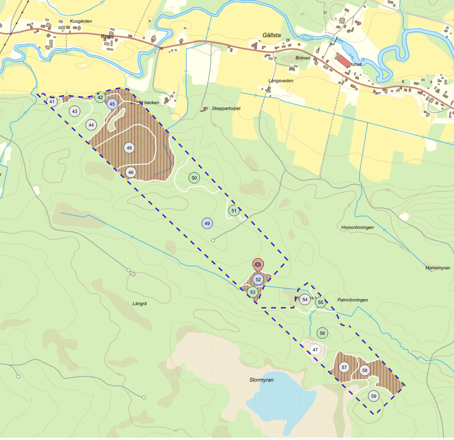 I planen föreslås ett uttag i avverkning på cirka 7300 m3sk, cirka 1300 m3sk gallring samt cirka 6000 m3sk