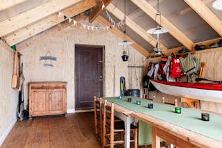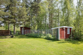 På fastigheten finns flera användbara byggnader: äldre ladugård, gäststuga, båthus från 2023, garage och ett isolerat hundhus. Tillsammans skapas goda förutsättningar för både vardagsliv, fritidsintressen och mindre verksamhet.