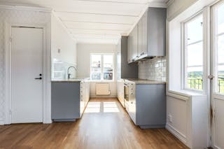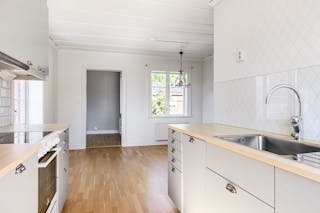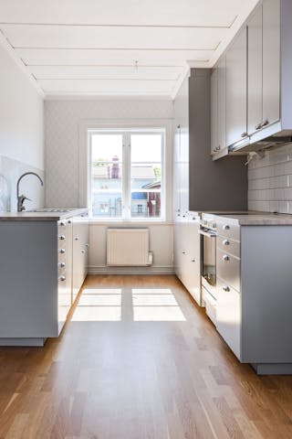 Lägenhet 1 är på 60 kvm och 2 rok, nuvarande hyresintäkt är 6500 sek/månad kontrakt finns.
