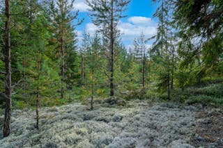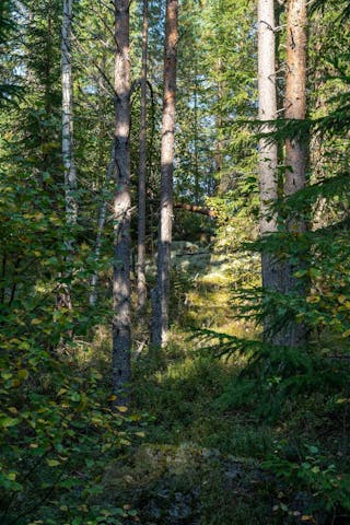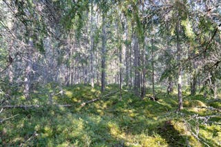 • Trädslagsfördelning: Tall 44 %, Gran 46 %, Löv 10 %