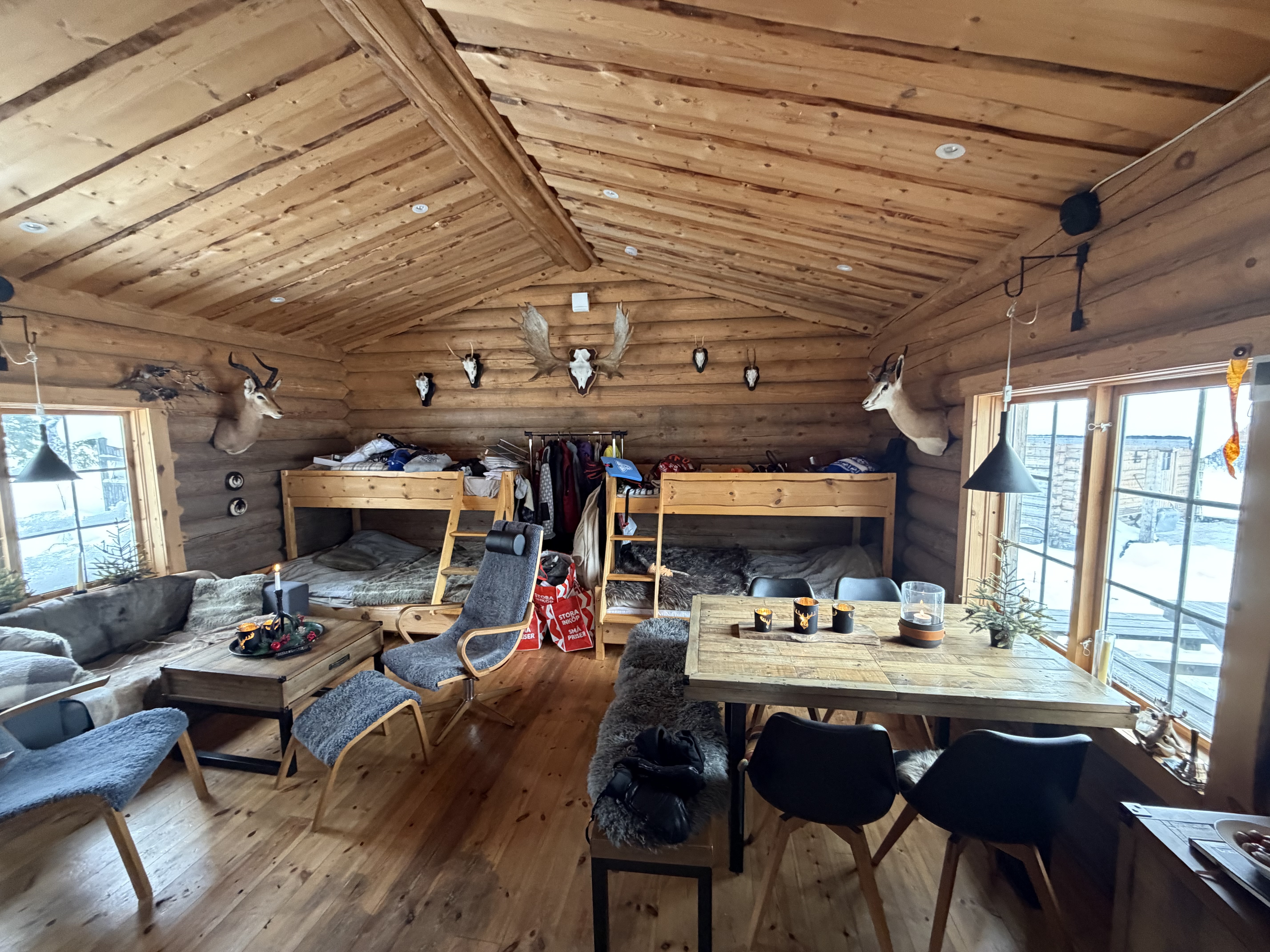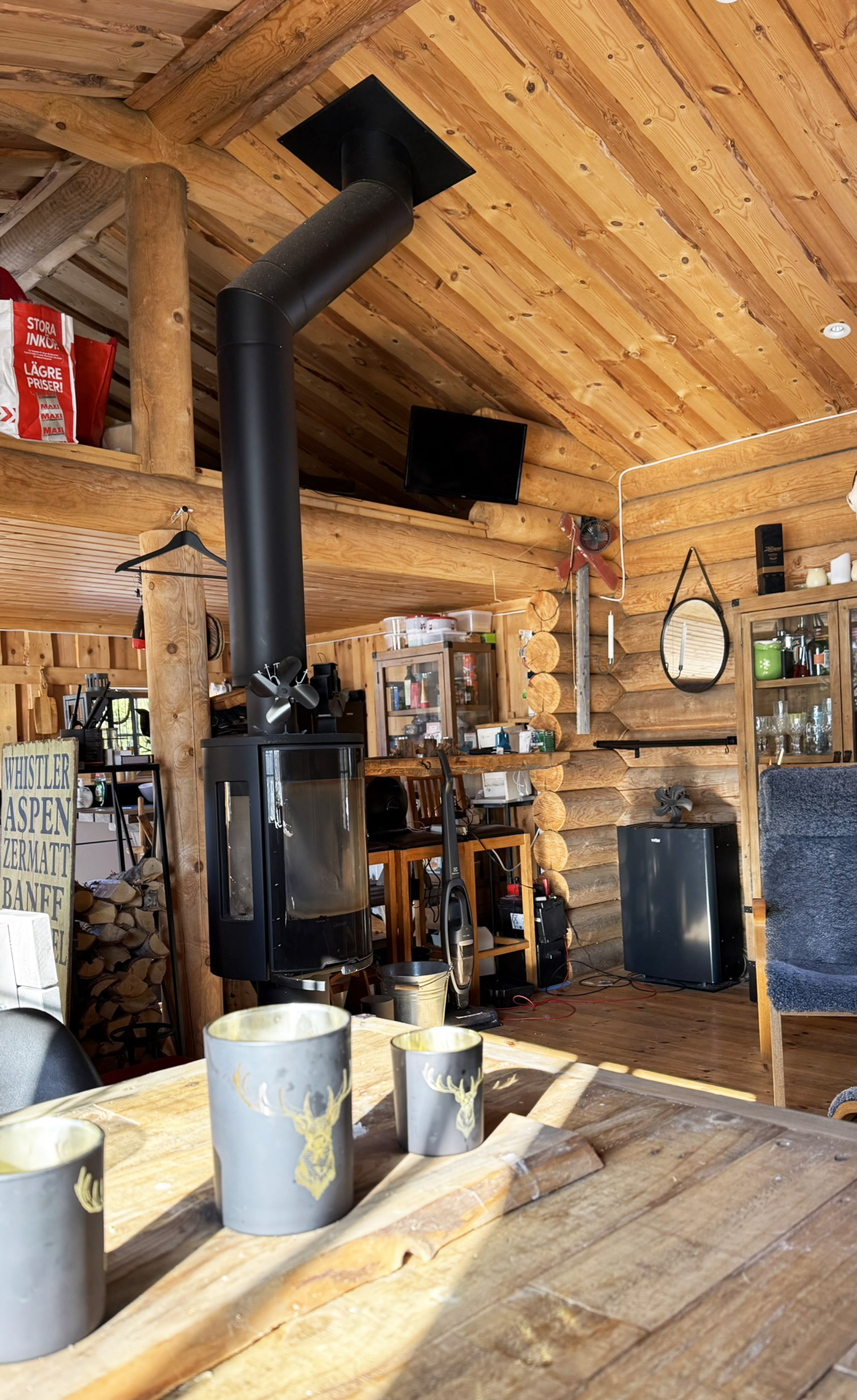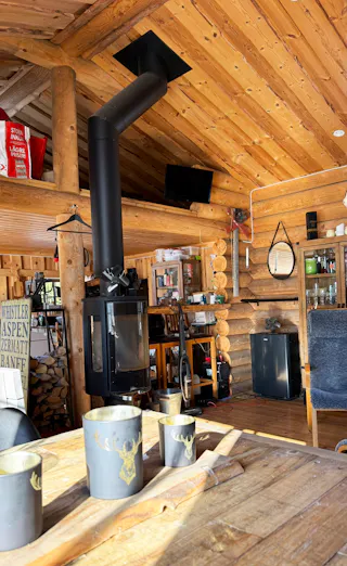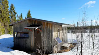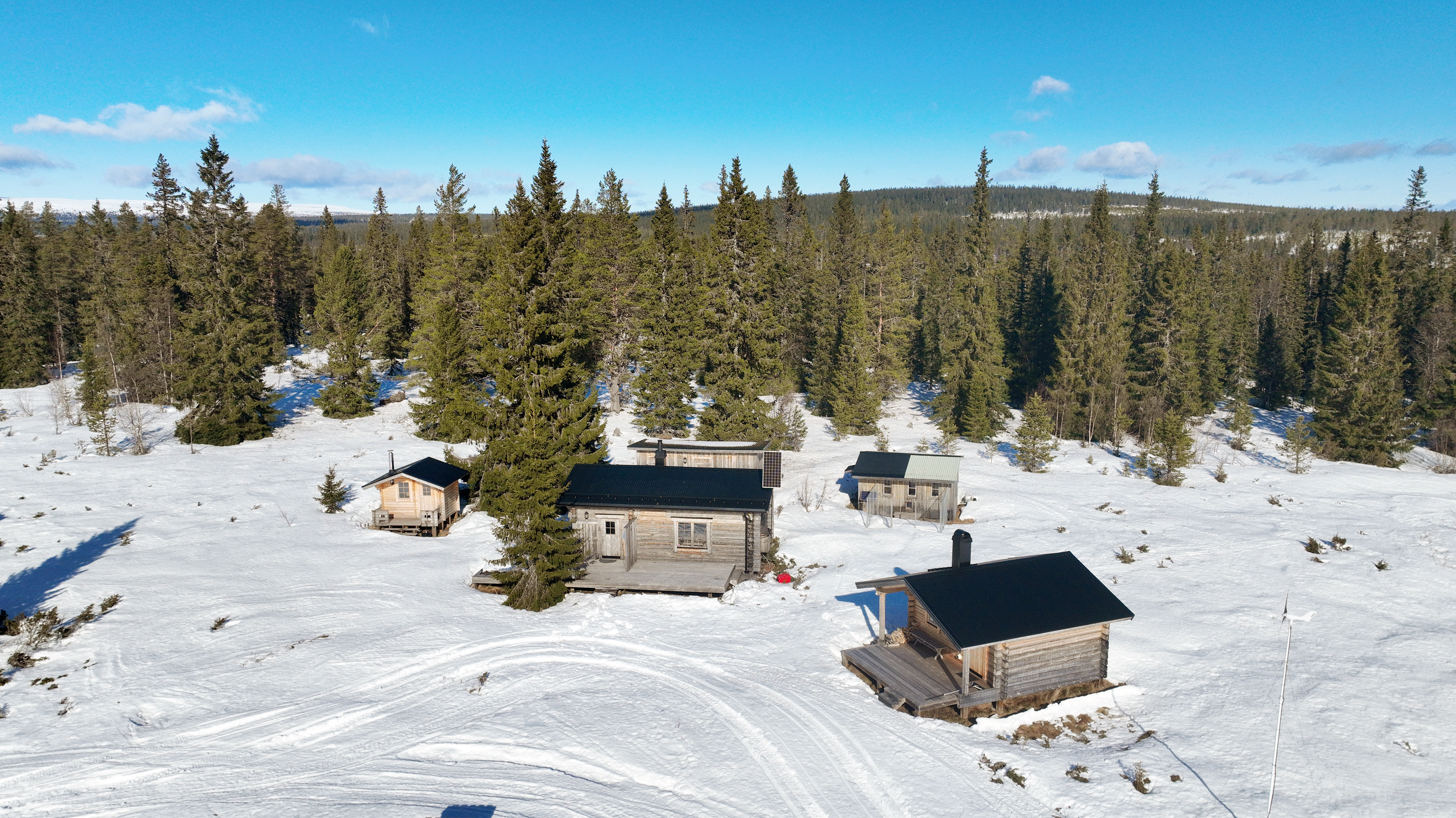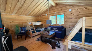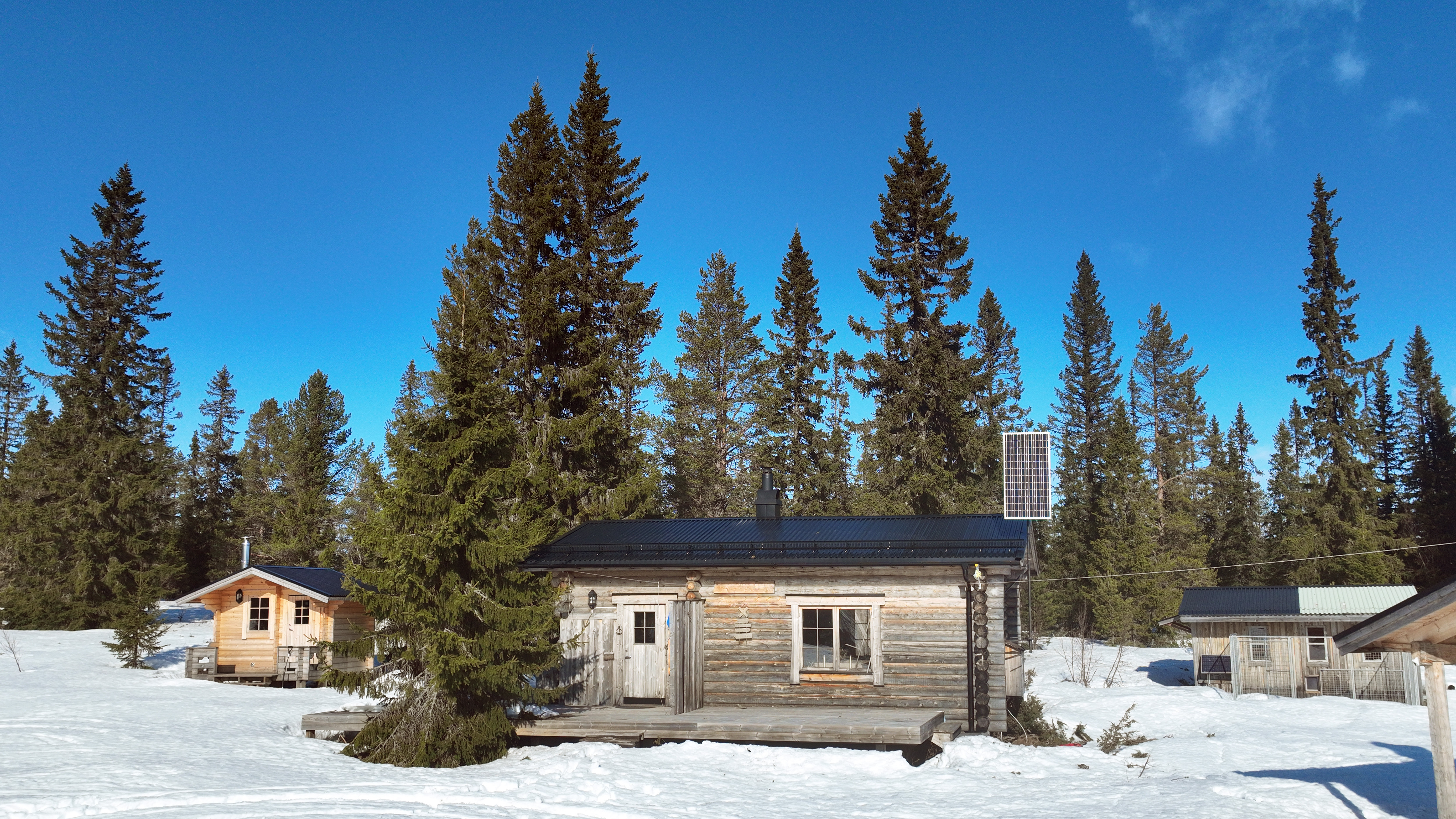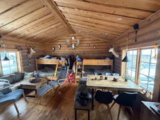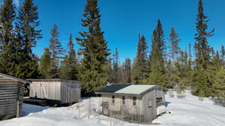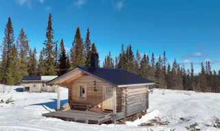 Charmig och välutrustad rundtimmerstuga med kök, vardagsrum och sovloft. Köket är utrustat med spis, ugn och kyl. Köksutrustningen drivs via separat gasoltub placerad under diskbänken. Fastigheten försörjs även via solceller och vindkraftverk till batterilösning/laddcentral samt elverk. Uppvärmning via kamin. Vatten från borrad brunn, pumpas upp med 220 volts försörjning.