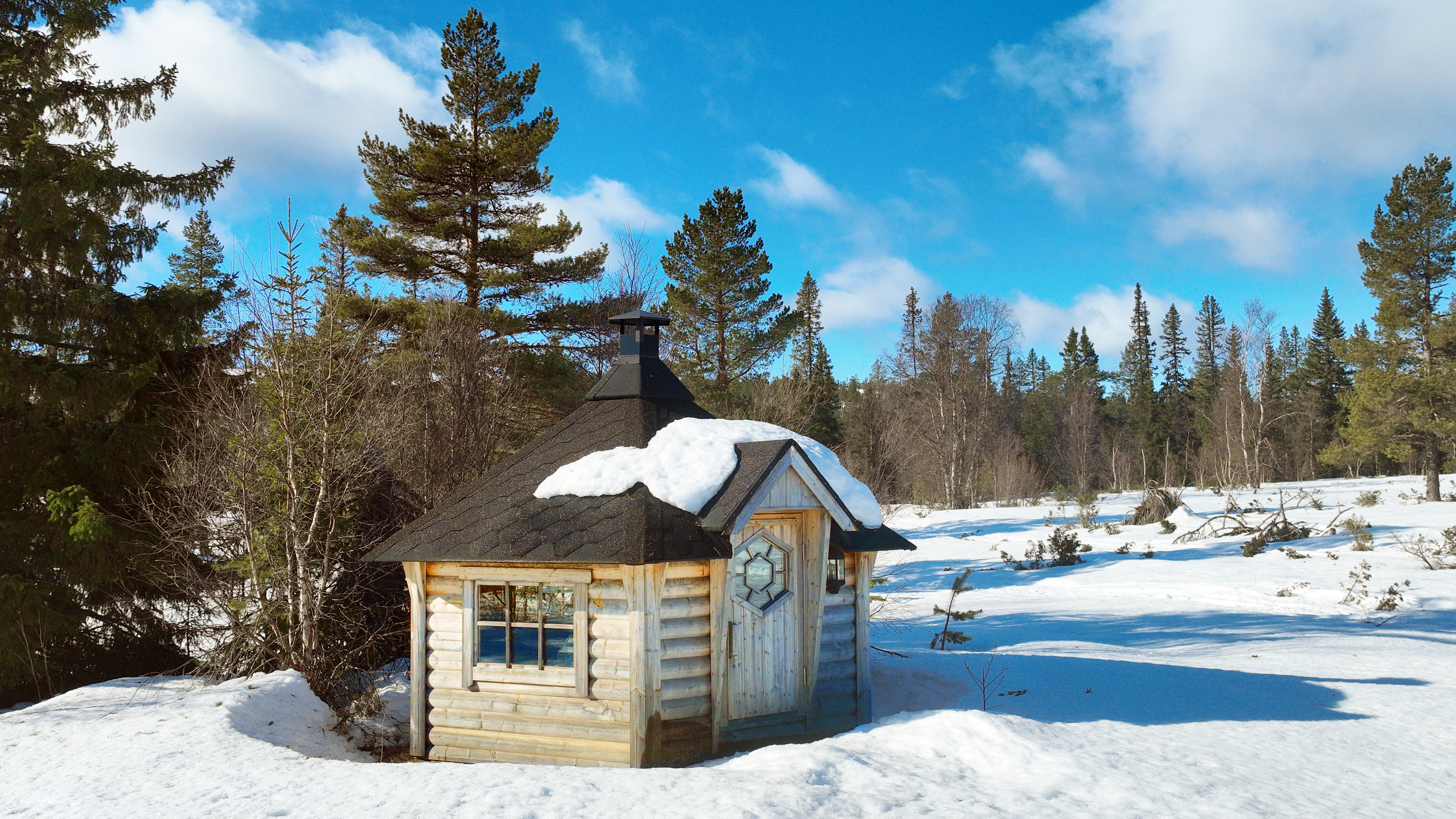 Grillkåta uppförd i timmer, el finns indraget.