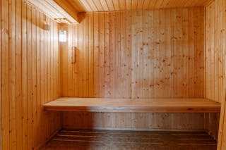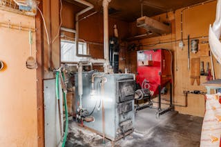 Träbyggnad med gjutet golv och betongpannor på taket. Inrymmer pannrum med äldre Albin kombipanna ved/havre som det ej eldats i de senaste ca 10 åren samt en ackumulatortank om 1 000 l med elpatron. Därutöver finns förråd och en bastu där bastuaggregatet ej är installerat men ingår i överlåtelsen. Ovan finns ett magasin/loft. Vidbyggd carport med plats för två bilar.