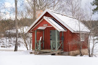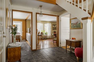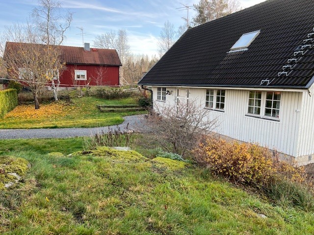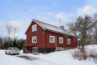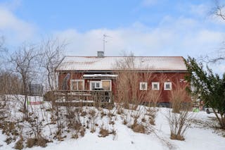 Det röda huset är en 1 1/2-plansvilla som byggdes 1929 och har byggts till 1974.