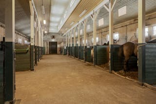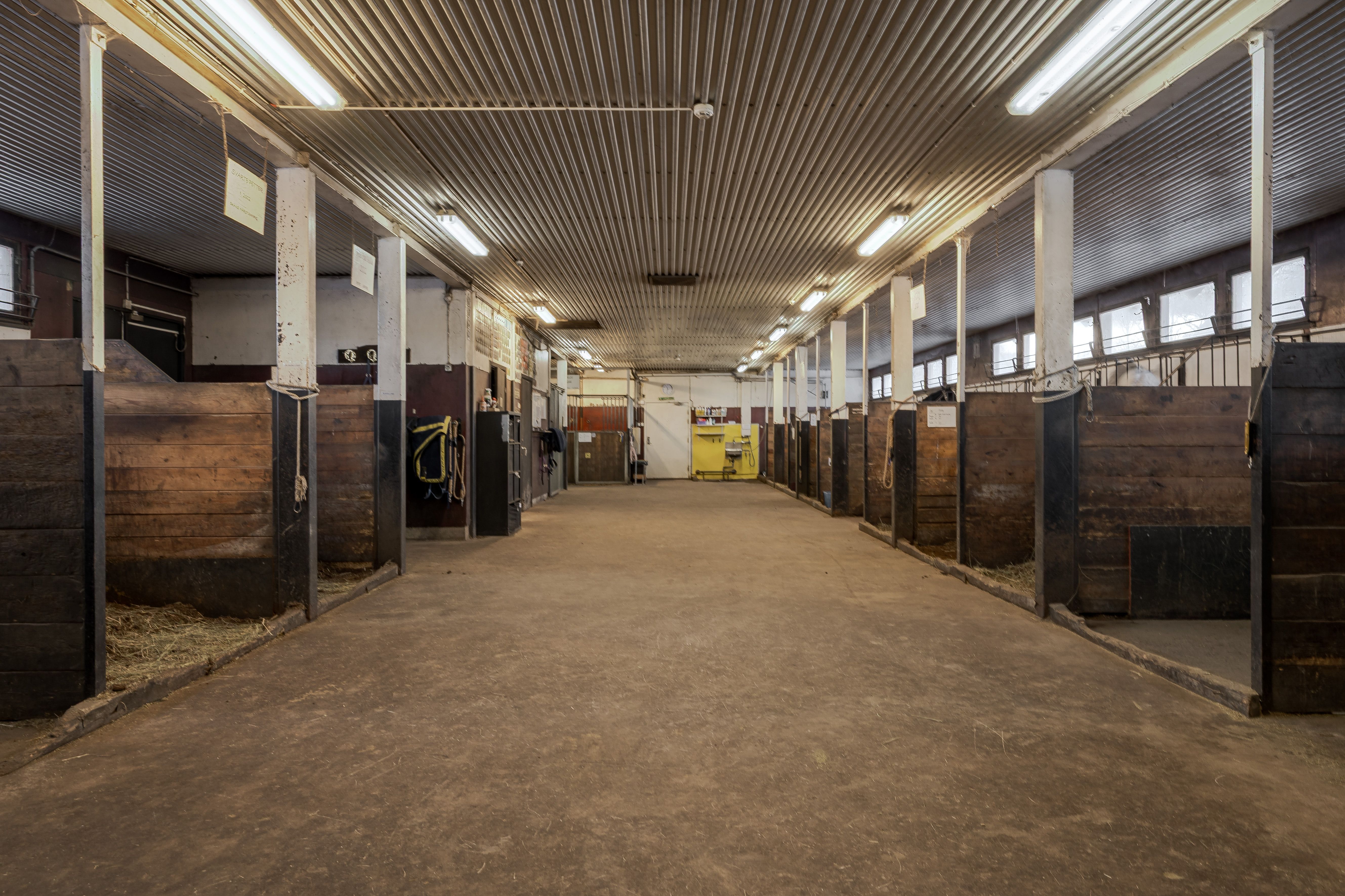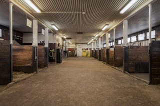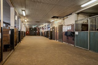 Stallbyggnaden är en mycket stor byggnad med tre olika stall samt ytor för personal, sadelkammare, omklädningsrum mm. Stallen har byggts olika år men sitter ihop som en stor byggnad.
