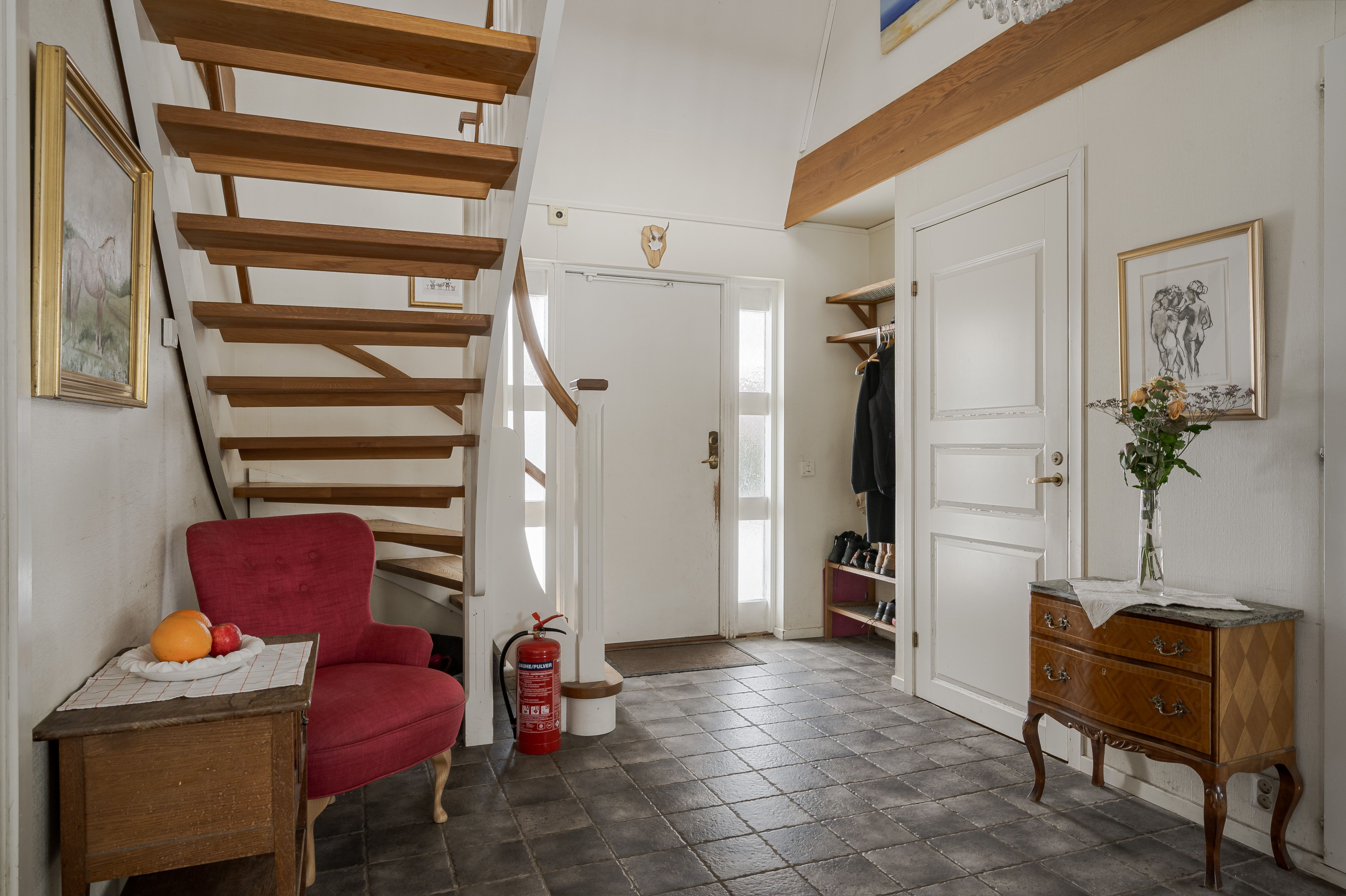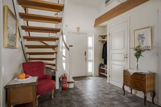 Planlösning: Hall med klinkergolv och vattenburen golvvärme.
