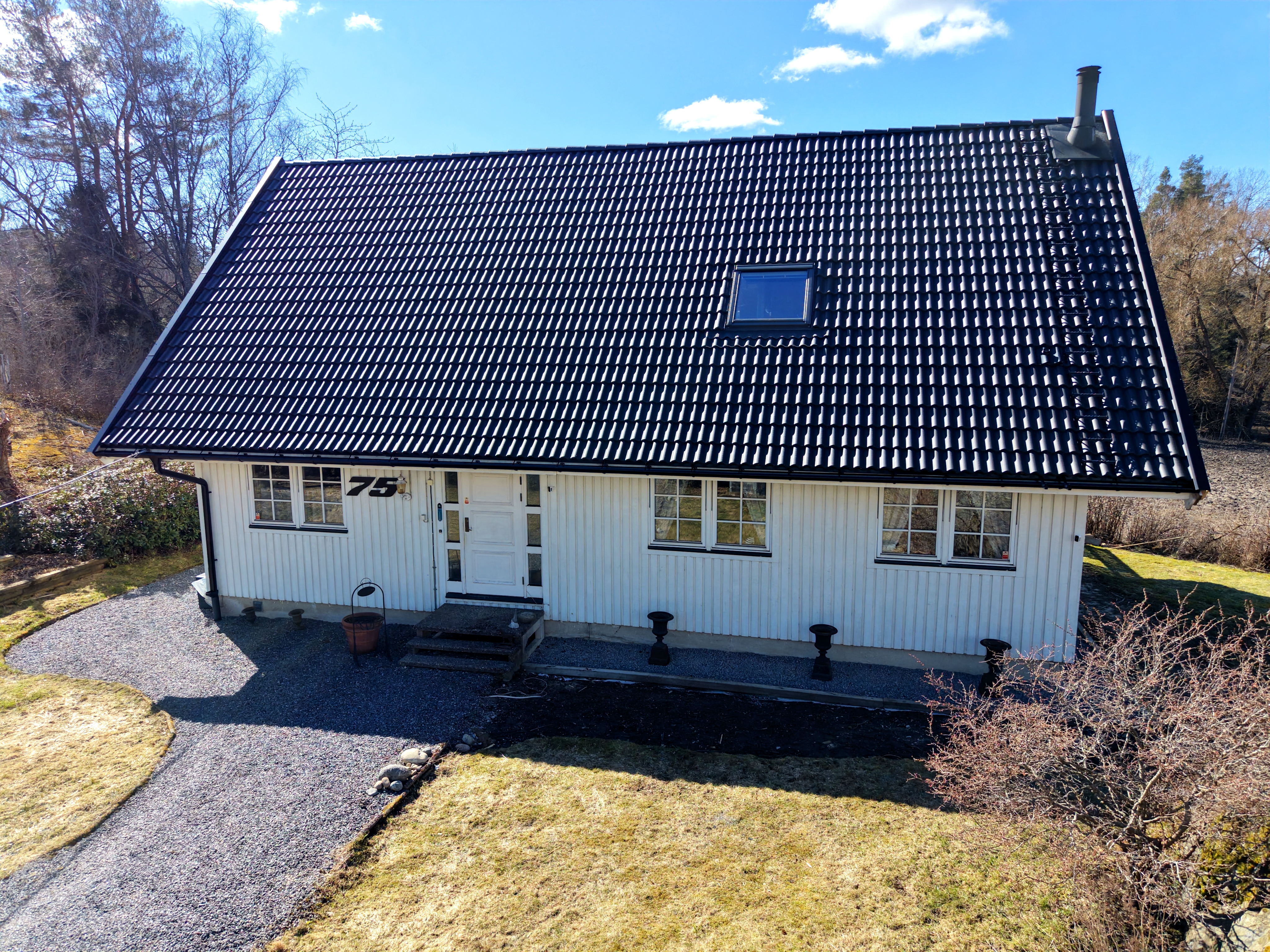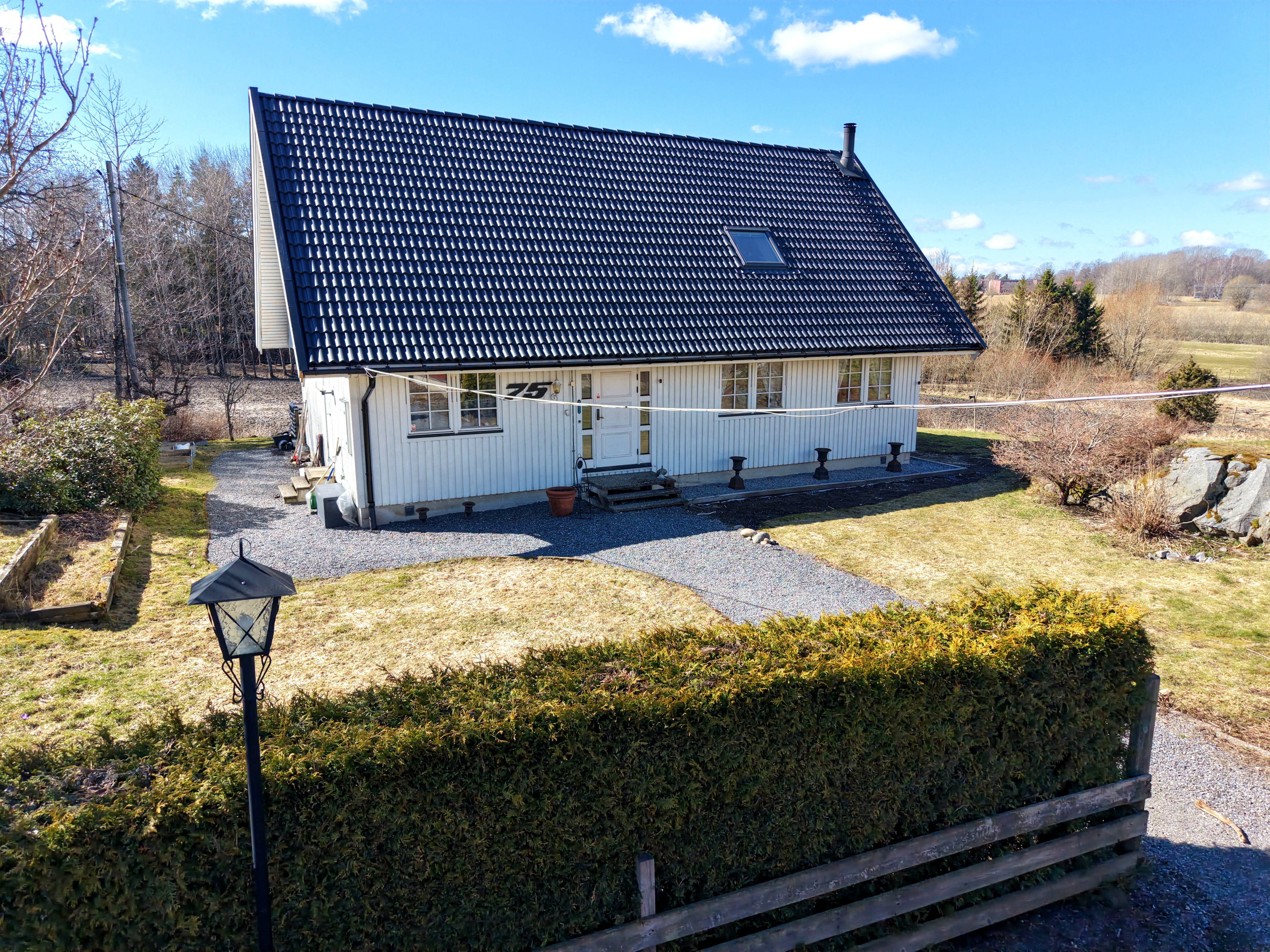 Det vita huset är byggt 1979 och är utrustat med helt ny taktäckning i form av betongpannor vars arbete utförts 2025/2026. Fönstren är 3 glasfönster, stommen är av trä, grunden är en torpargrund och huset har mekanisk frånluftsventilation. Huset värms via ett vattenburet system med en elpanna Nibe Evc 13 från 2004 samt en Tulikivi-täljstens kakelugn.