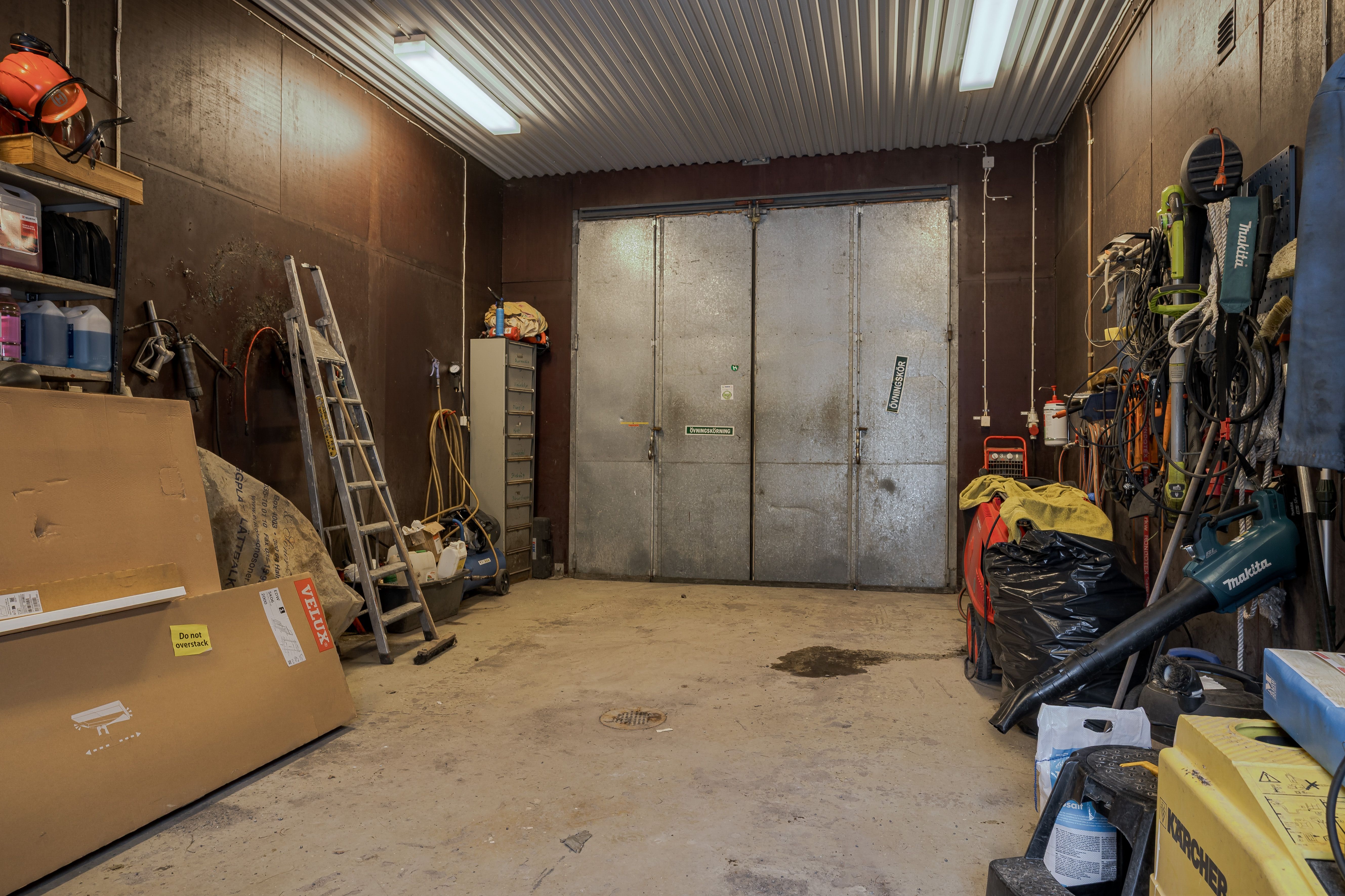 I samma byggnad som nya ridhuset men helt avsikt från ridhuset finns även en stor maskinhall med höga portar. Måtten är ca 18 x 24 meter.
