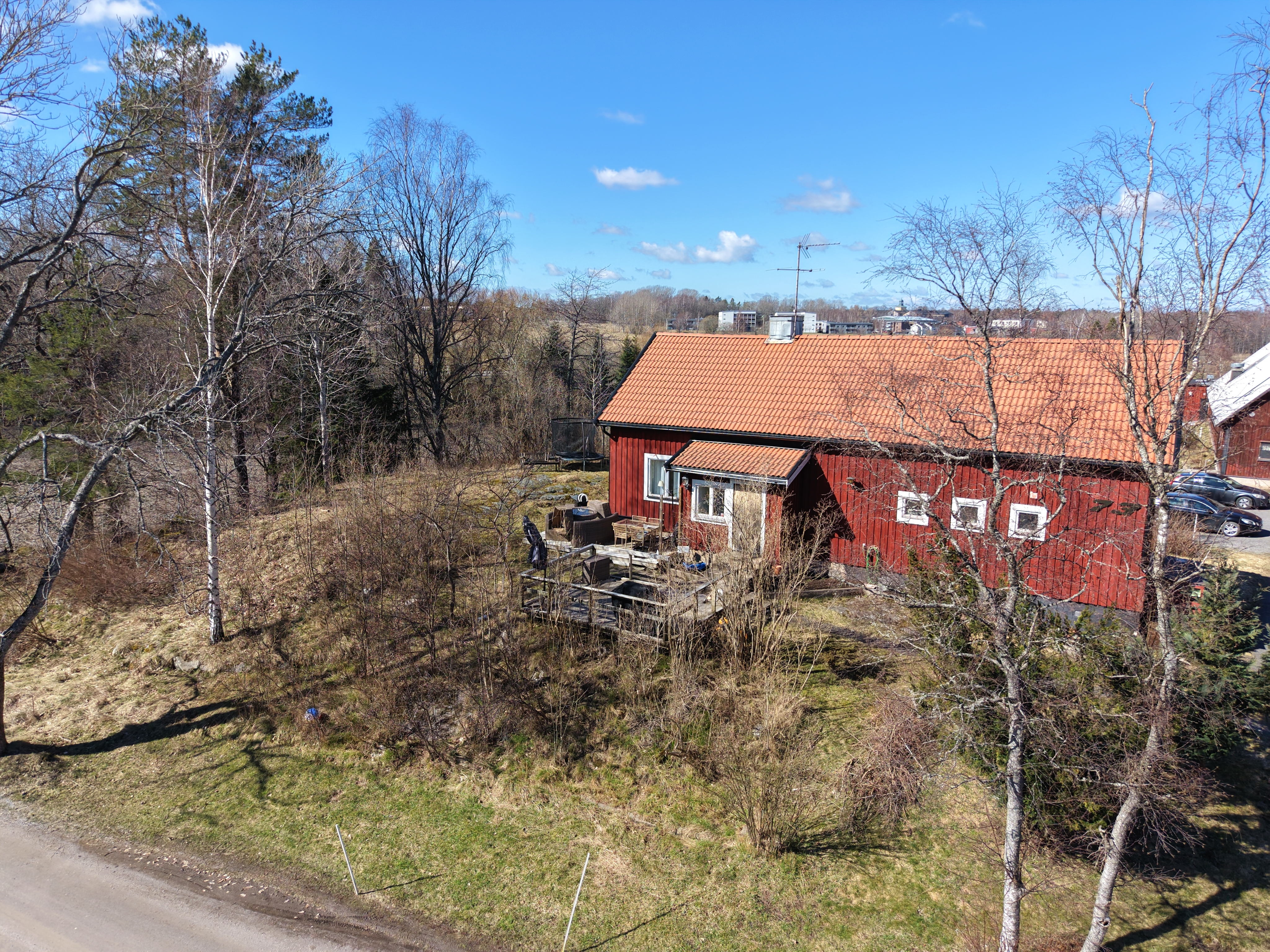 Det röda huset är uthyrd och hyresgästerna har besittningsrätt. Intäkten är 10.000 kr per månad i kallhyra.