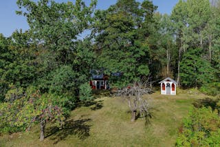Ovan jordkällaren finns en fristående byggnad, väl lämpad som förråd.
