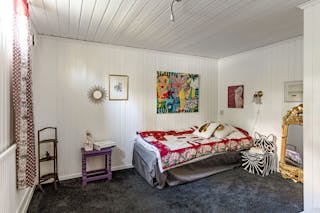 Det tredje sovrummet finns på detta plan och har en mörk heltäckningsmatta samt vitmålad vägg- och takpanel.