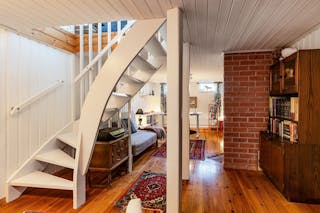 Via trappan från vardagsrummet kommer du till nedre plan. Du möts av en stor gillestuga med öppen spis med kassett (2012), vitmålad väggpanel och gediget trägolv. Här är alternativen många och endast fantasin sätter stopp. Kanske kan det bli ett ställe för häng till ungdomarna, ett eget kontor, en vävstuga eller ett stort sovrum.