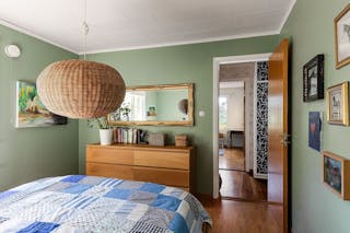 På detta plan finns två sovrum. Master bedroom är målat i en varm grön ton på väggarna och har direkt åtkomst till badrummet. Precis utanför finns en stor klädkammare.
