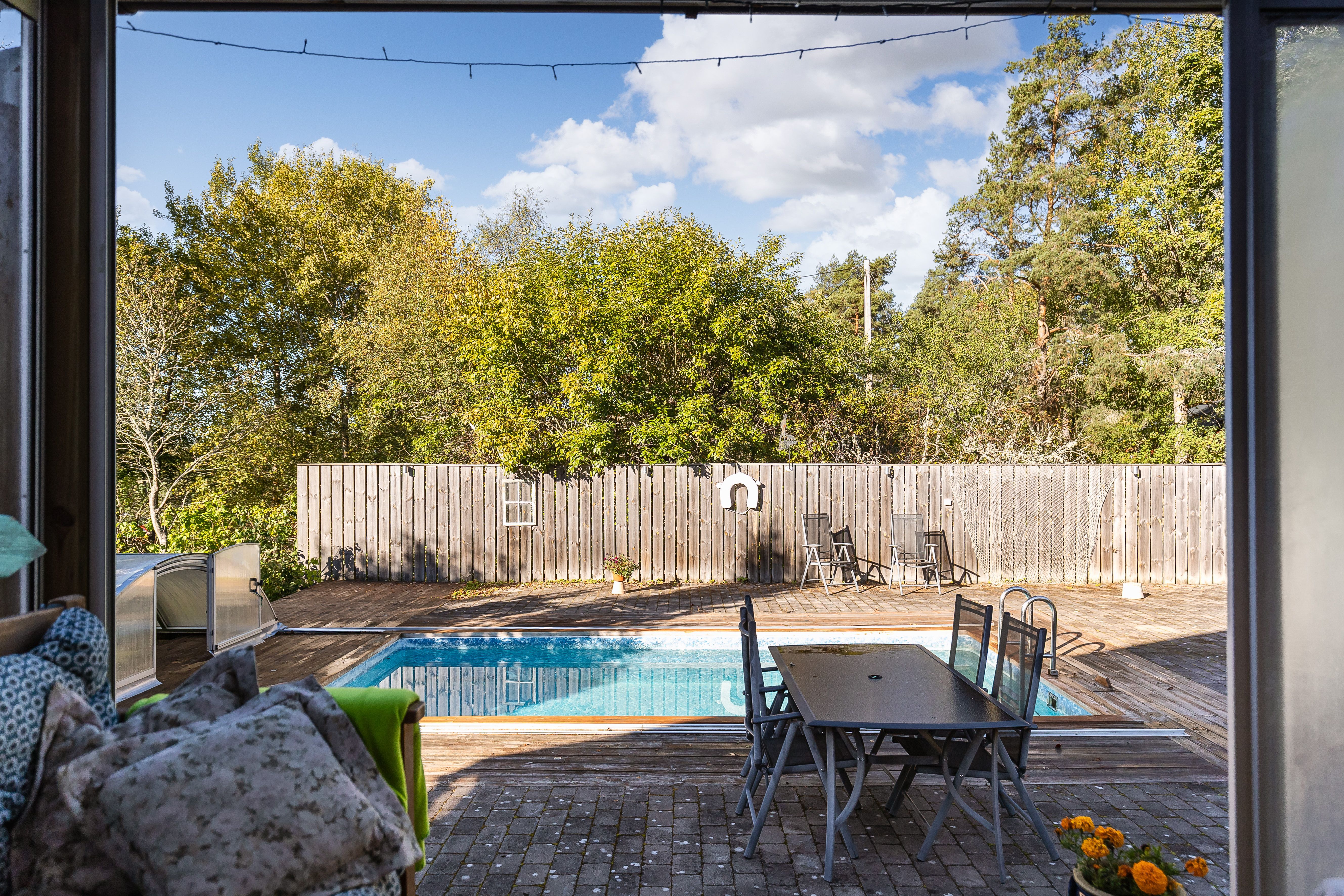 Varmt välkommen till detta välskötta boende med stora ytor, uppvärmd pool och många möjligheter. Här kan du skapa din lantliga dröm i vackra omgivningar, odla dina egna grödor och ha hästarna på hemmaplan. En separat byggnad rymmer två väl tilltagna uteboxar, sadelkammare samt ett vidbyggt skydd lämpligt för lösdrift. Möjlighet till generösa betesmarker erbjuds på grannfastigheten genom ett arrende.