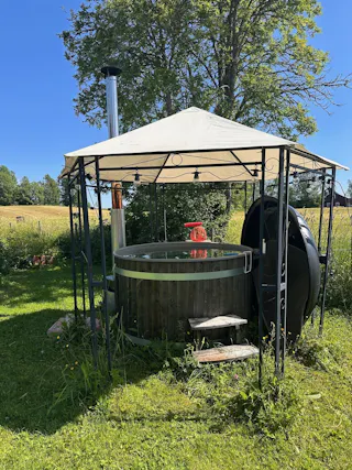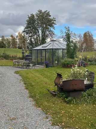 För dig som drömmer om att leva mer självförsörjande finns hönshus, odlingsytor och ett rymligt växthus med en trivsam sittplats där du kan njuta av grönskan sommartid och årstidernas skiftningar året runt. I trädgården finns även en badtunna som kompletterar gårdens utemiljö och erbjuder ett extra utrymme för avkoppling.