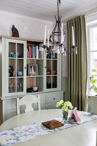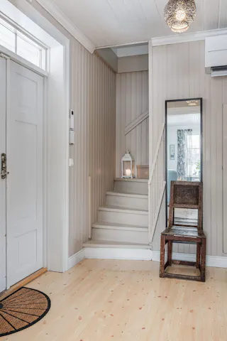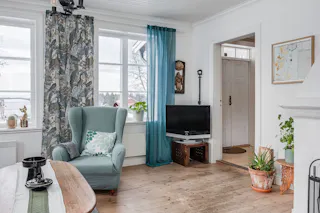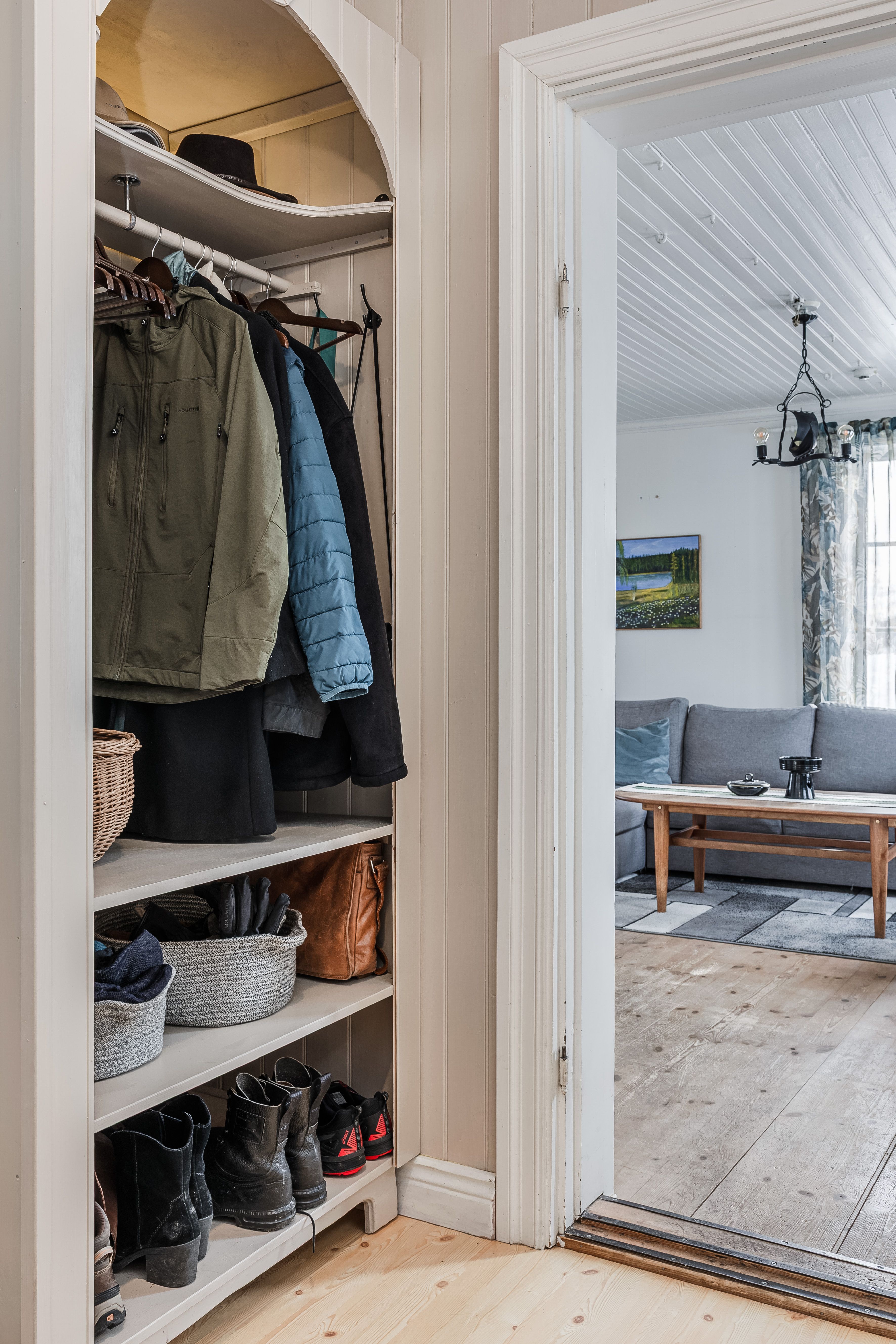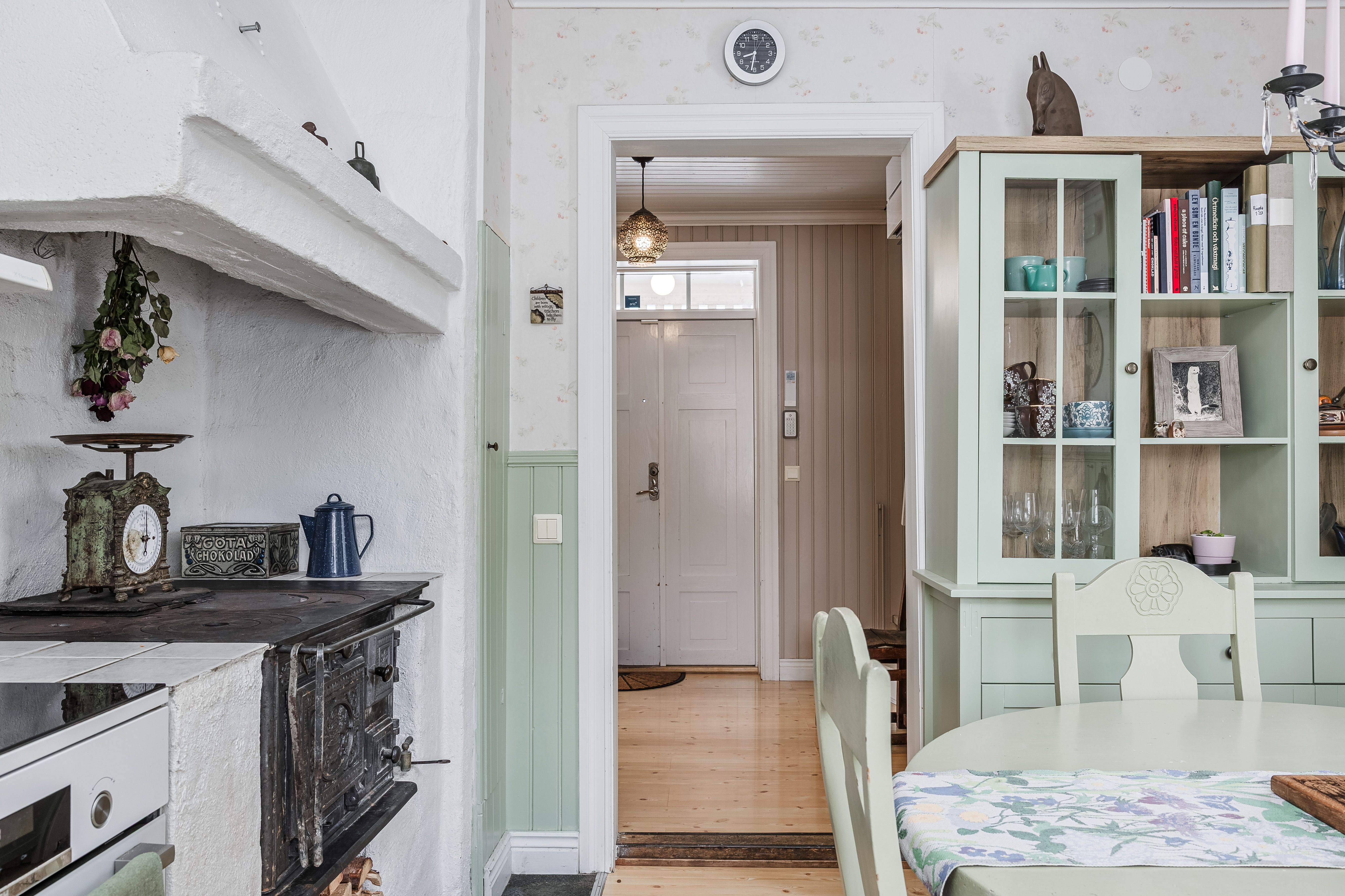Bostadshuset erbjuder en varm och hemtrevlig atmosfär med charmiga detaljer.