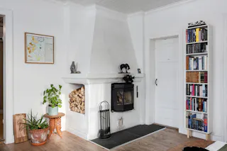 Direktverkande el, luftvärmepump samt möjlighet till vedeldning i kamin.
