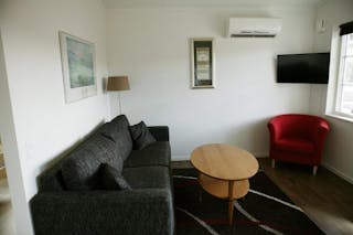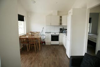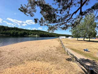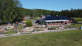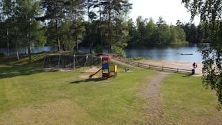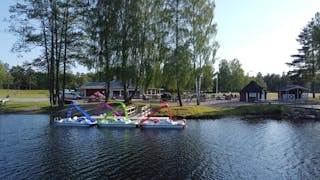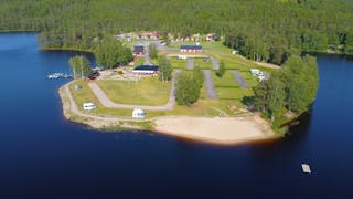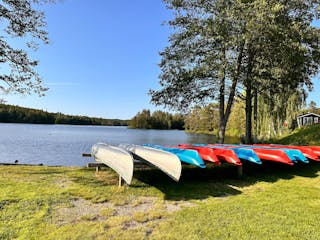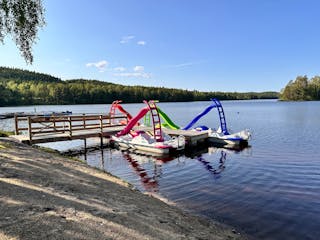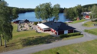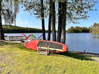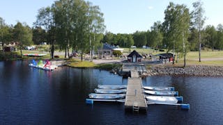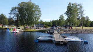 Med egen sandstrand och badbrygga, uthyrning av båtar och kajaker, samt fiskevatten runt knuten, är det enkelt att fylla dagarna med upplevelser. För barnen väntar lekplats och stora grönytor att springa fritt på, medan vuxna kan koppla av i bastun eller med en fika i kaféet.
