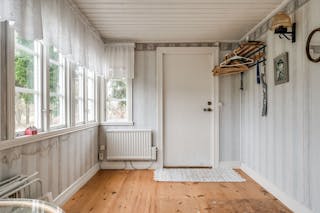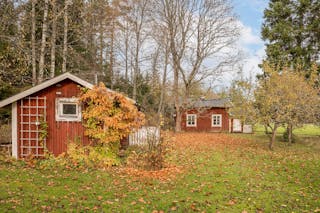 Därtill finns en fristående förrådsbyggnad och en jordkällare.