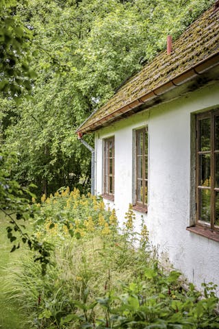 Detta karaktärsfulla hus bjuder på genuin charm och en lantlig atmosfär som tar dig tillbaka till en svunnen tid. Byggnaden är uppförd kring sekelskiftet och har bevarat flera av sina tidstypiska detaljer såsom de spröjsade fönstren, den putsade fasaden och det branta sadeltaket med träpanel i gavelspetsarna.