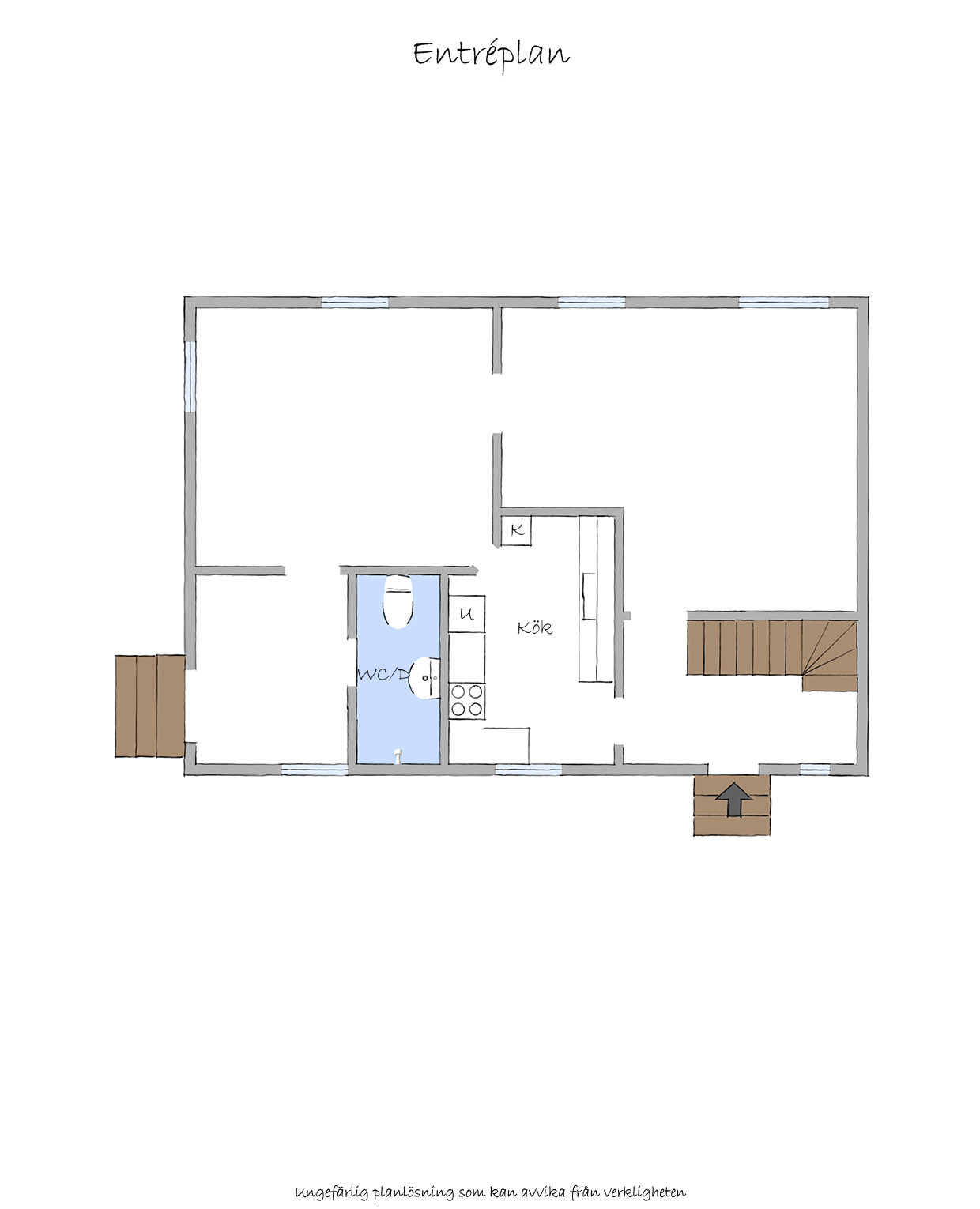 På entréplanet finns även en WC/dusch samt två entréer, vilket skapar praktiska möjligheter.