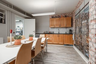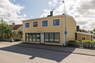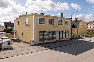 Hyreshus med 320 kvm BRA + 96 kvm BIA i källaren. Huset består av en lägenhet om 140 kvm samt två affärslokaler på 100, respektive 80 kvm. Lägenheten och båda affärslokalerna är uthyrda. Årliga hyresintäkter (varmhyra, inkl. hushållsel) 302 400 kr. Uppvärmning genom bergvärme. Från fastigheten är det gångavstånd till centrum, skola, sjukhus och mataffärer.