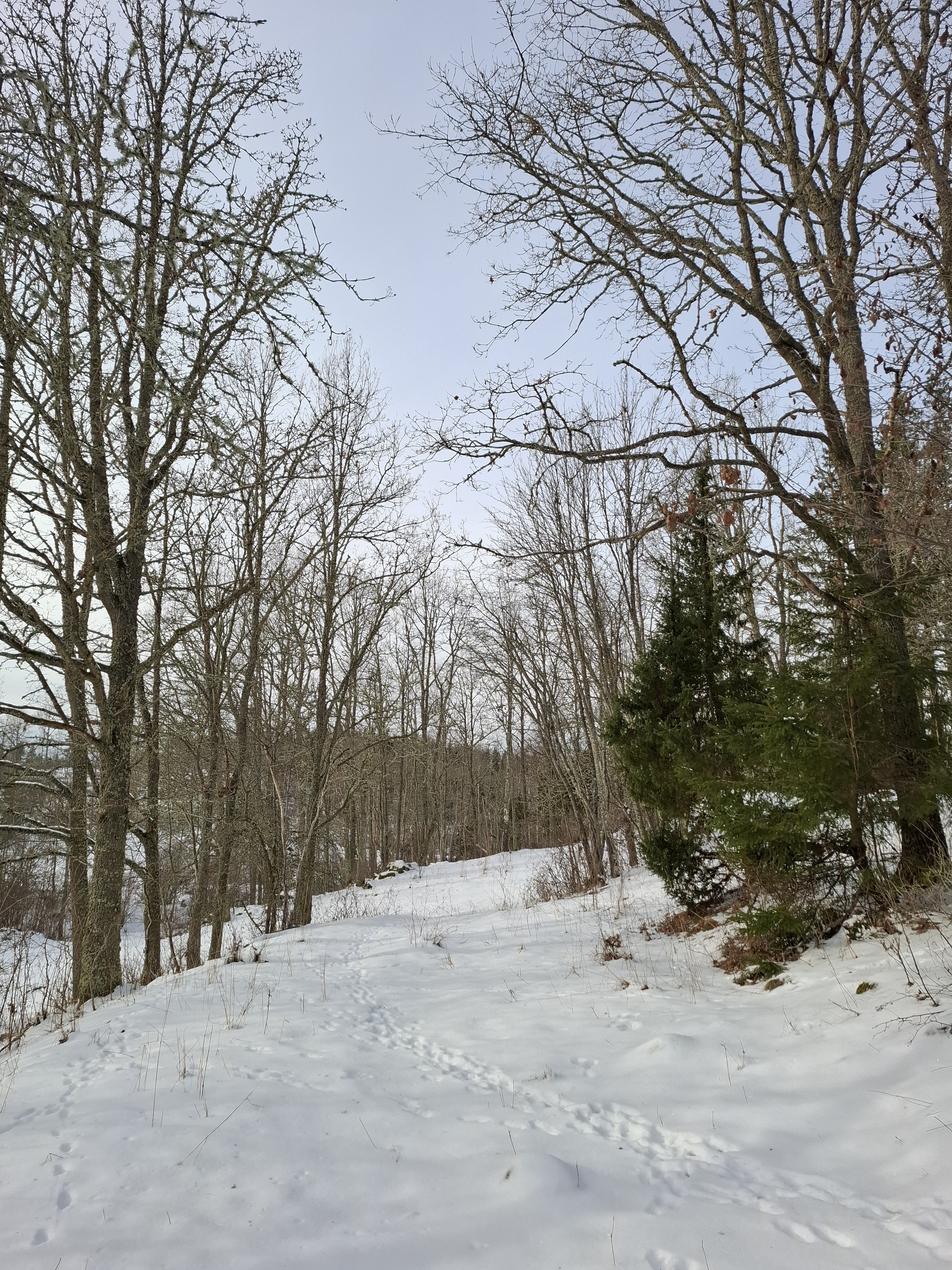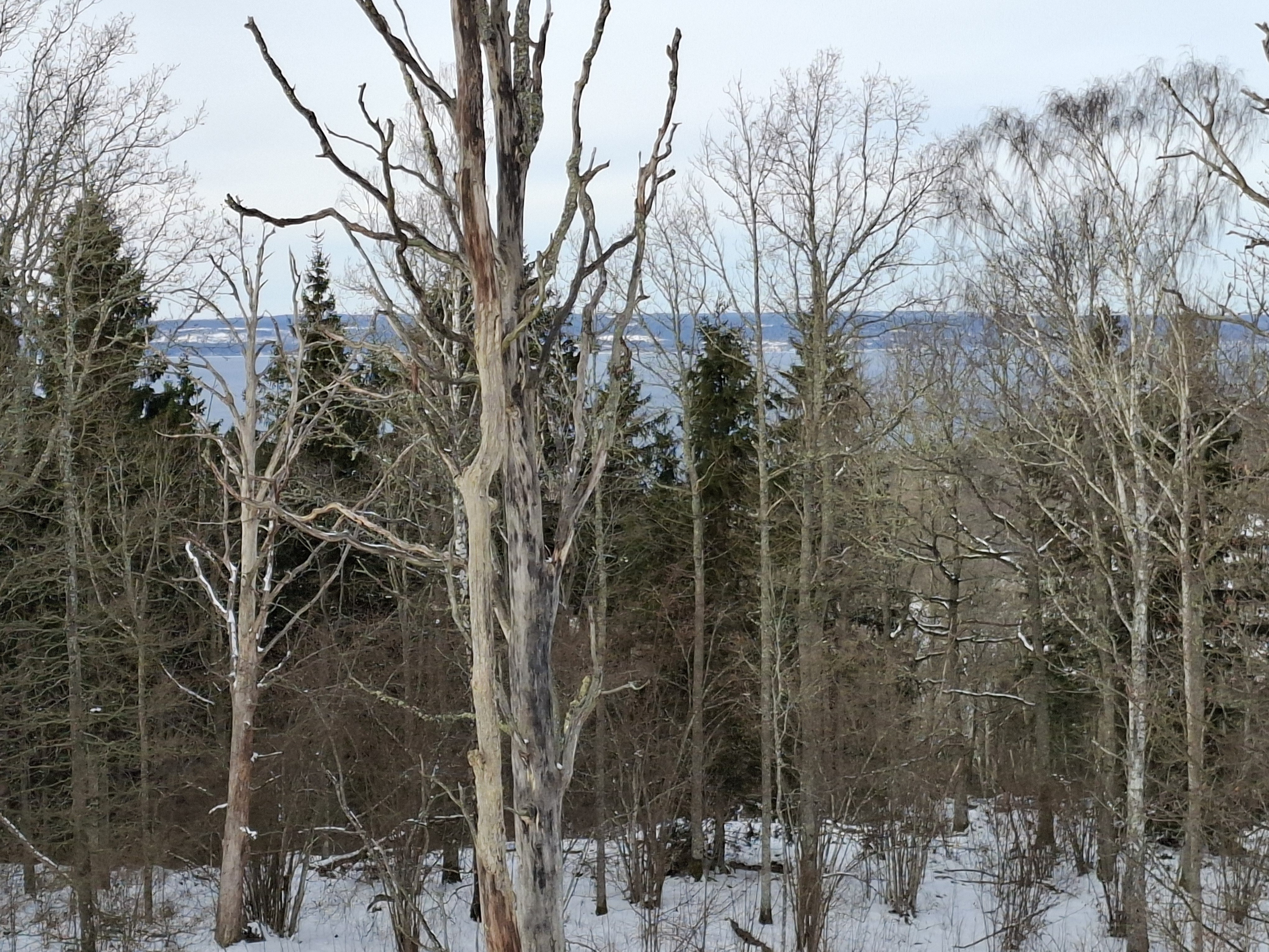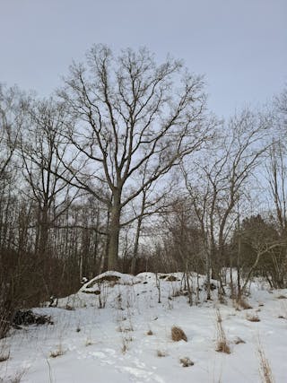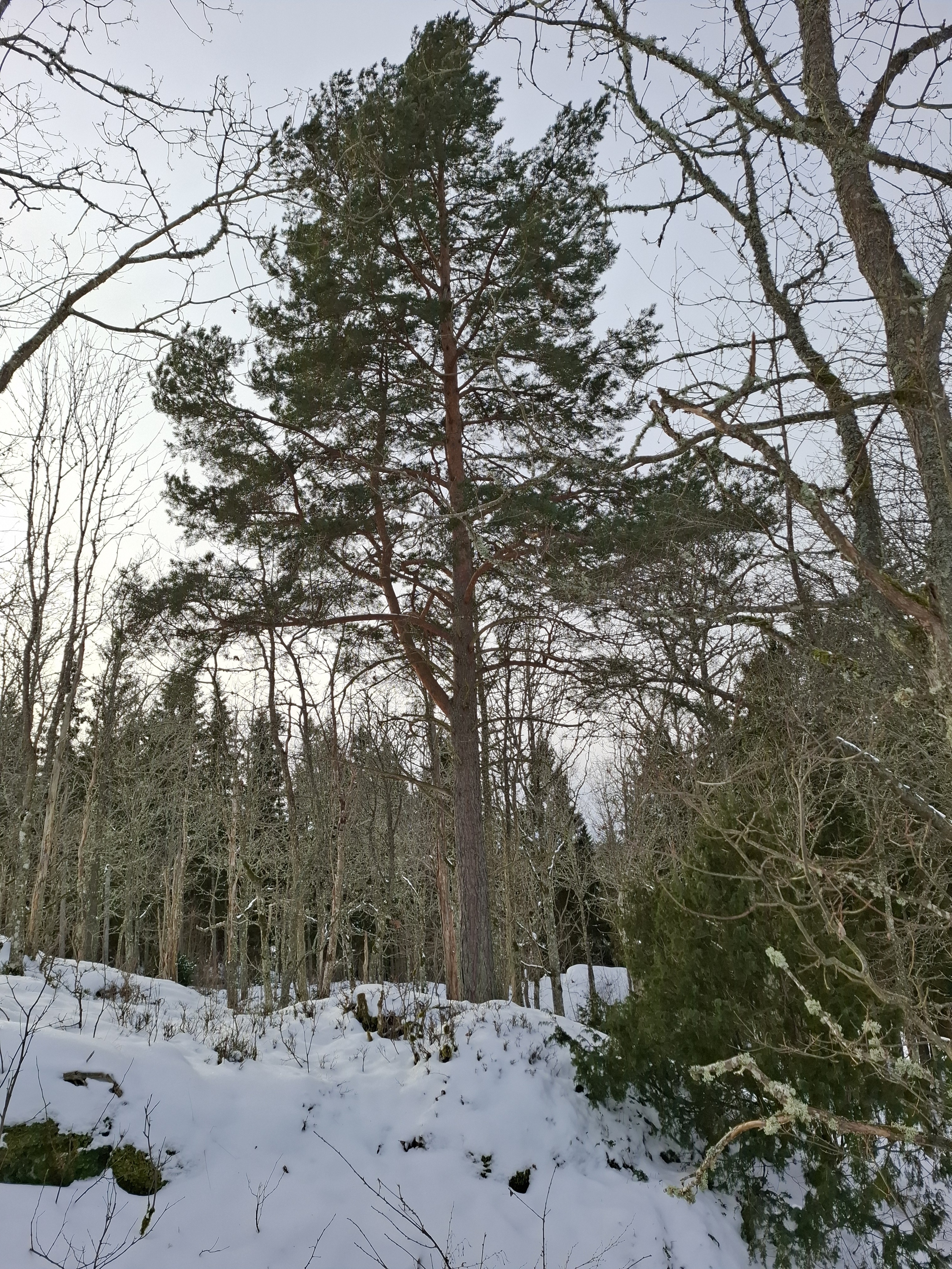 blandskog i brantmiljö med solexponerade tallar och senvuxna ekar med