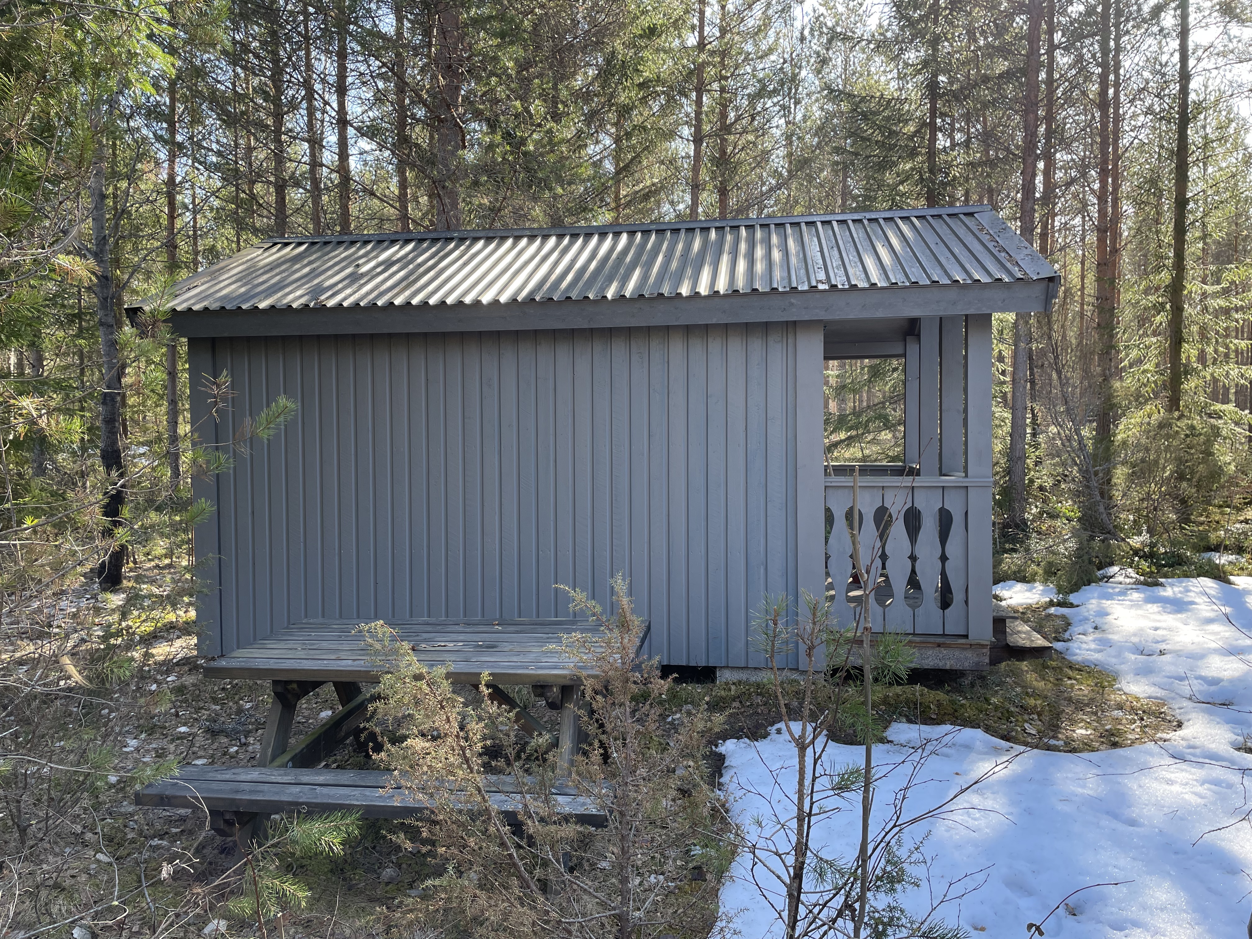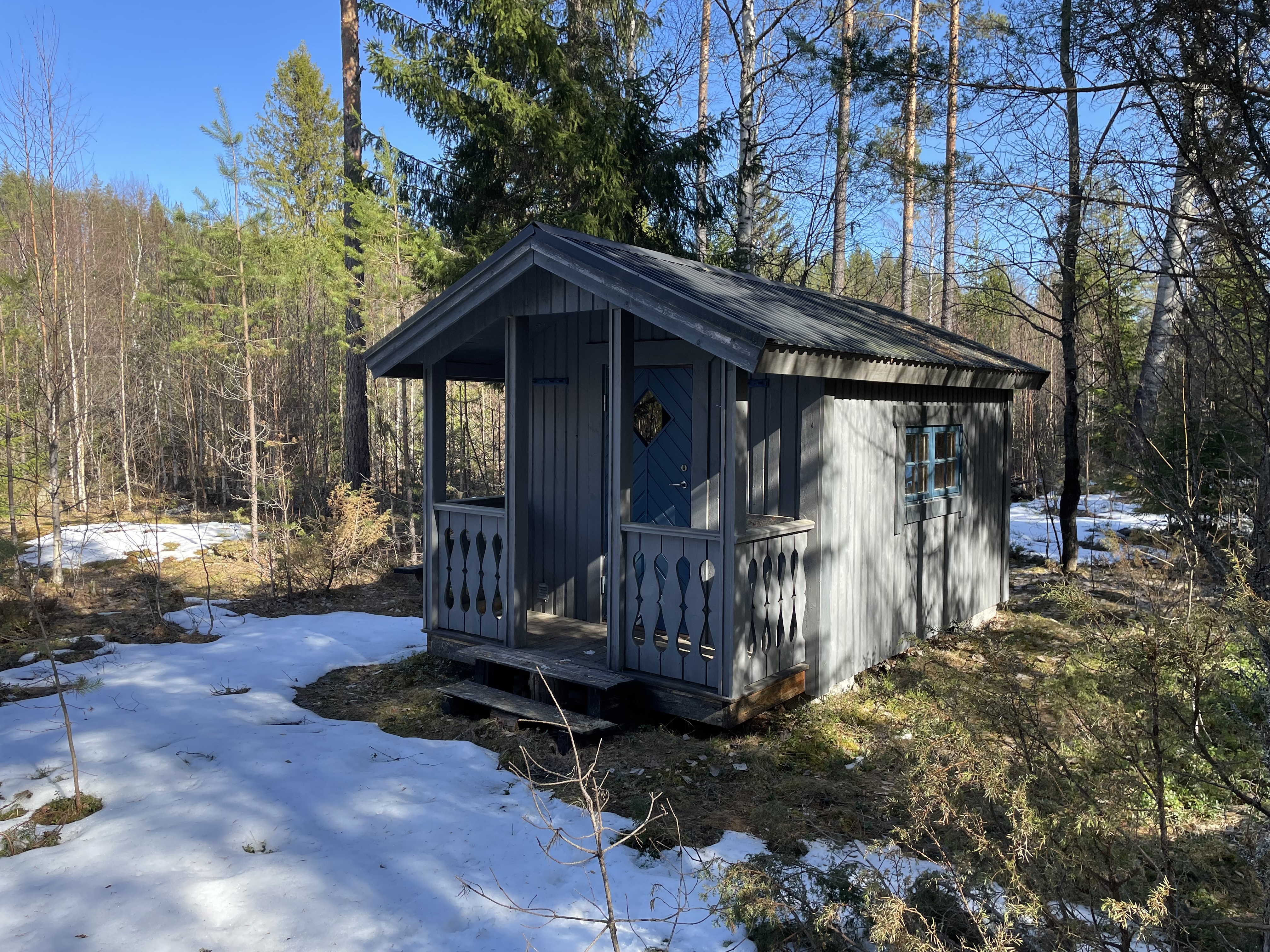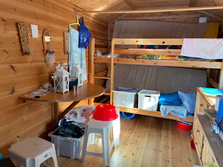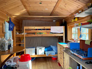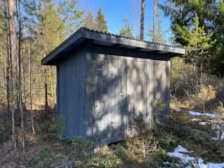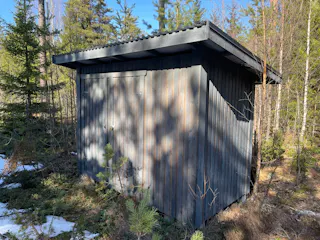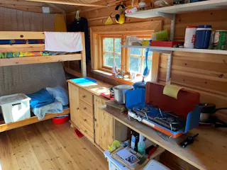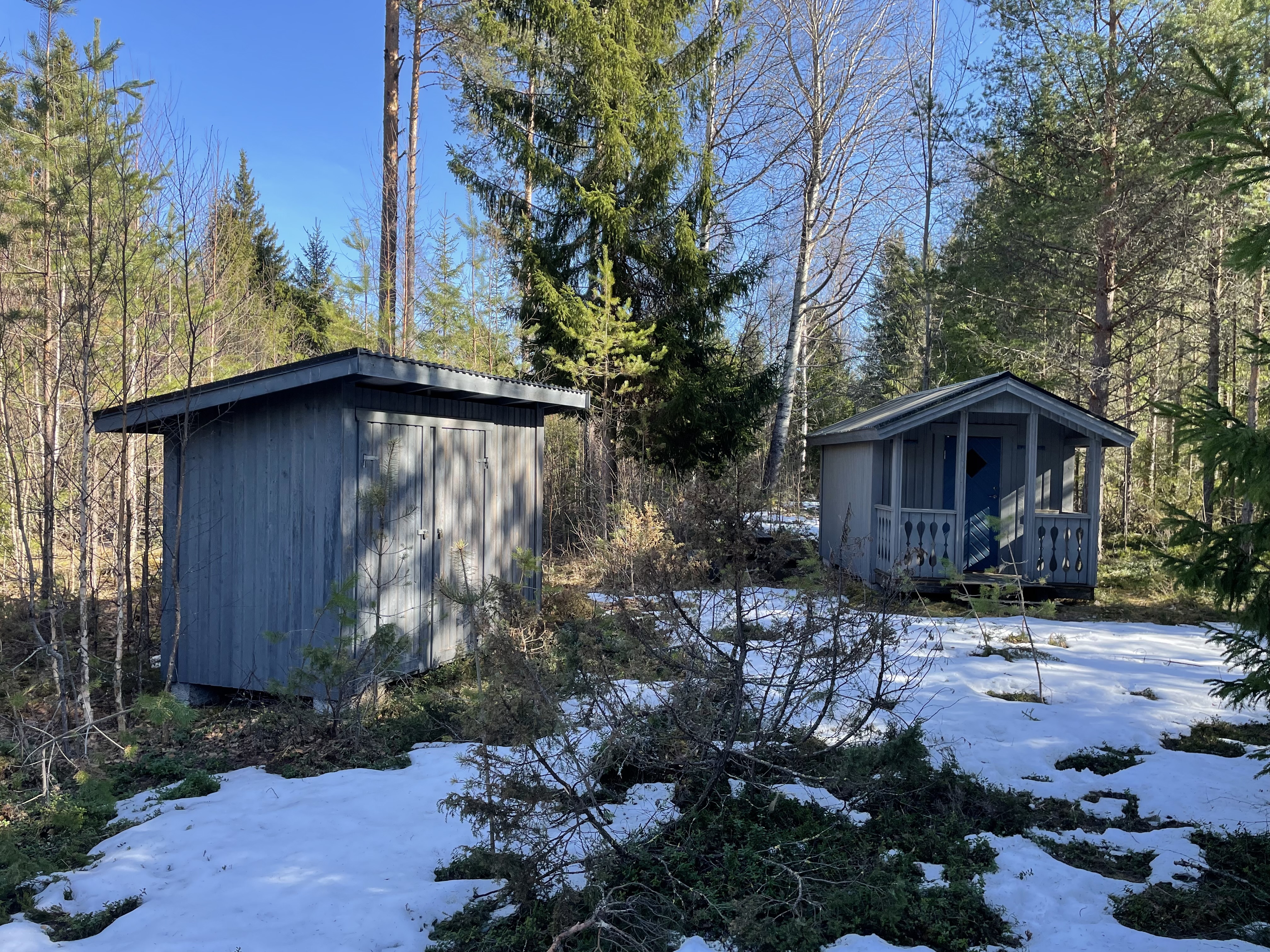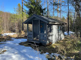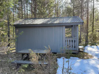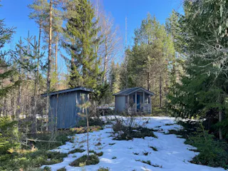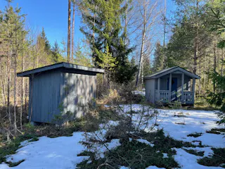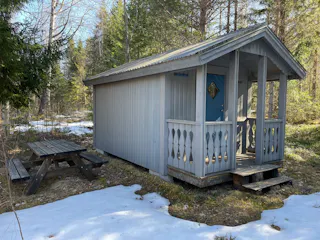 På fastigheten finns en välskött mindre stuga perfekt för övernattning, kompletterad med separat förrådsbyggnad i samma stil med förrådsutrymme och utedass. Stugan har en överbyggd farstukvist/veranda och invändigt ett genomtänkt och funktionellt utrymme med våningssängar, förvaring samt enkelt kök med gasolkök och arbetsytor. Inredningen är praktisk och anpassad för övernattning i samband med jakt, fiske eller naturvistelser.