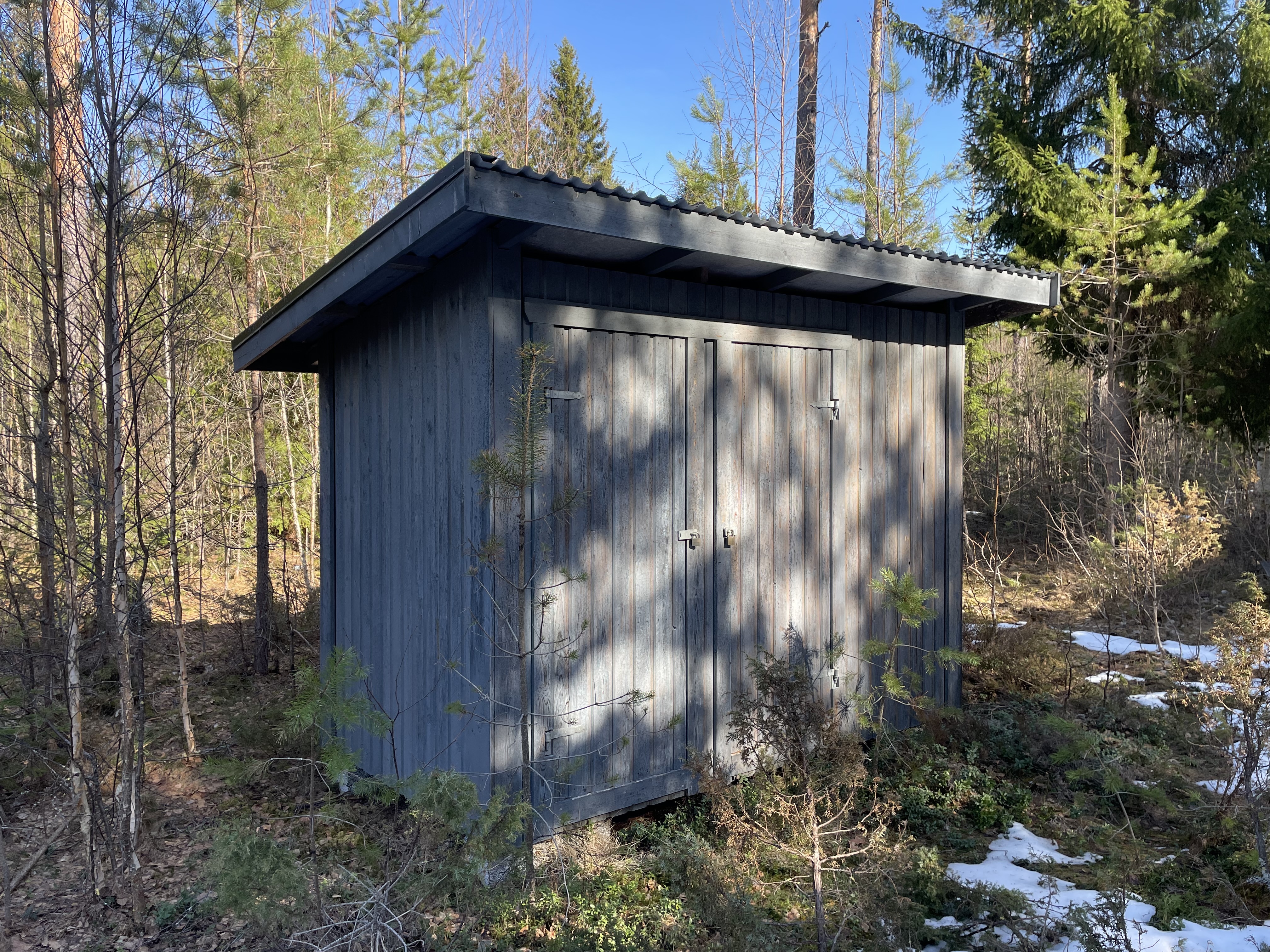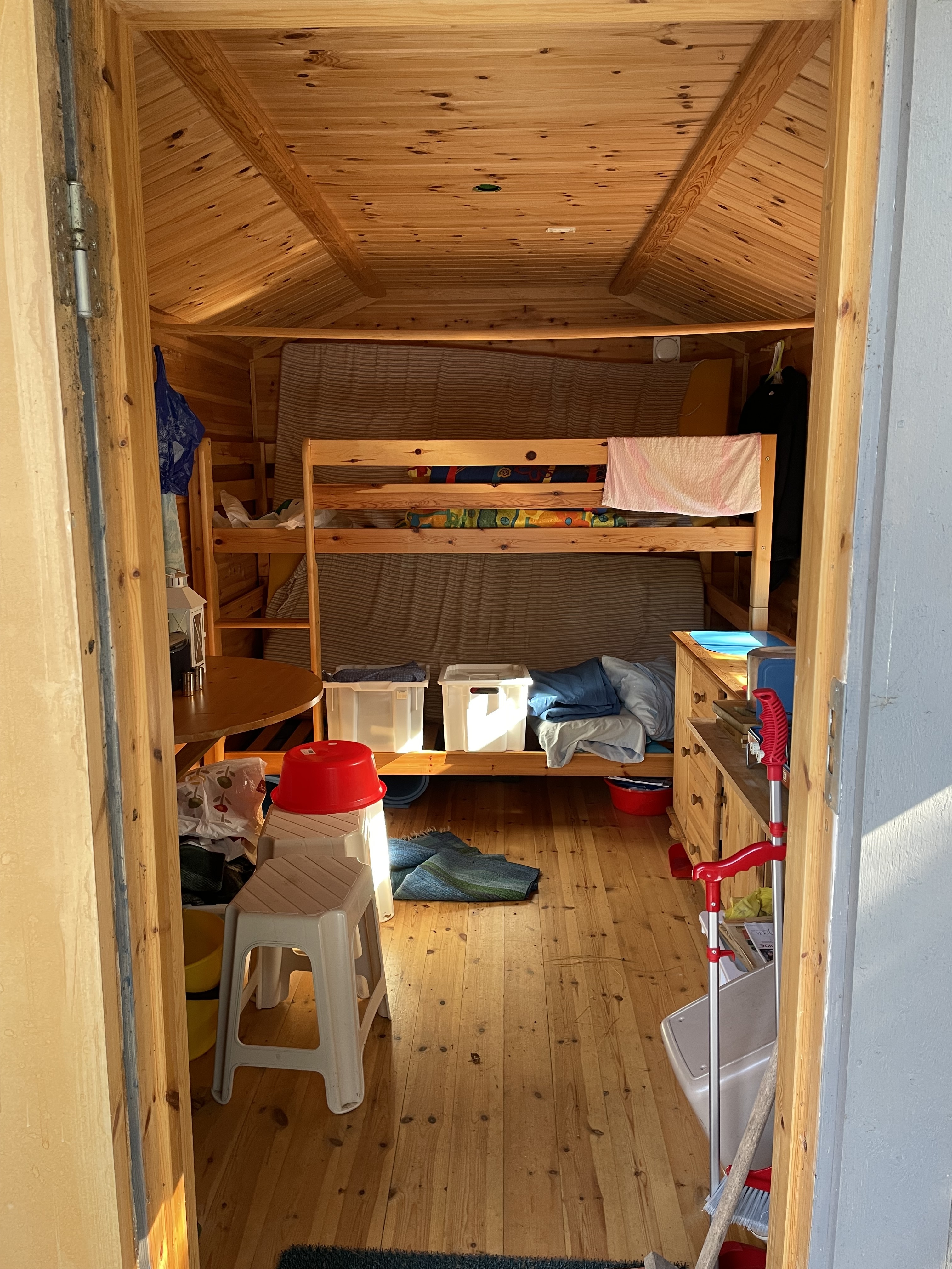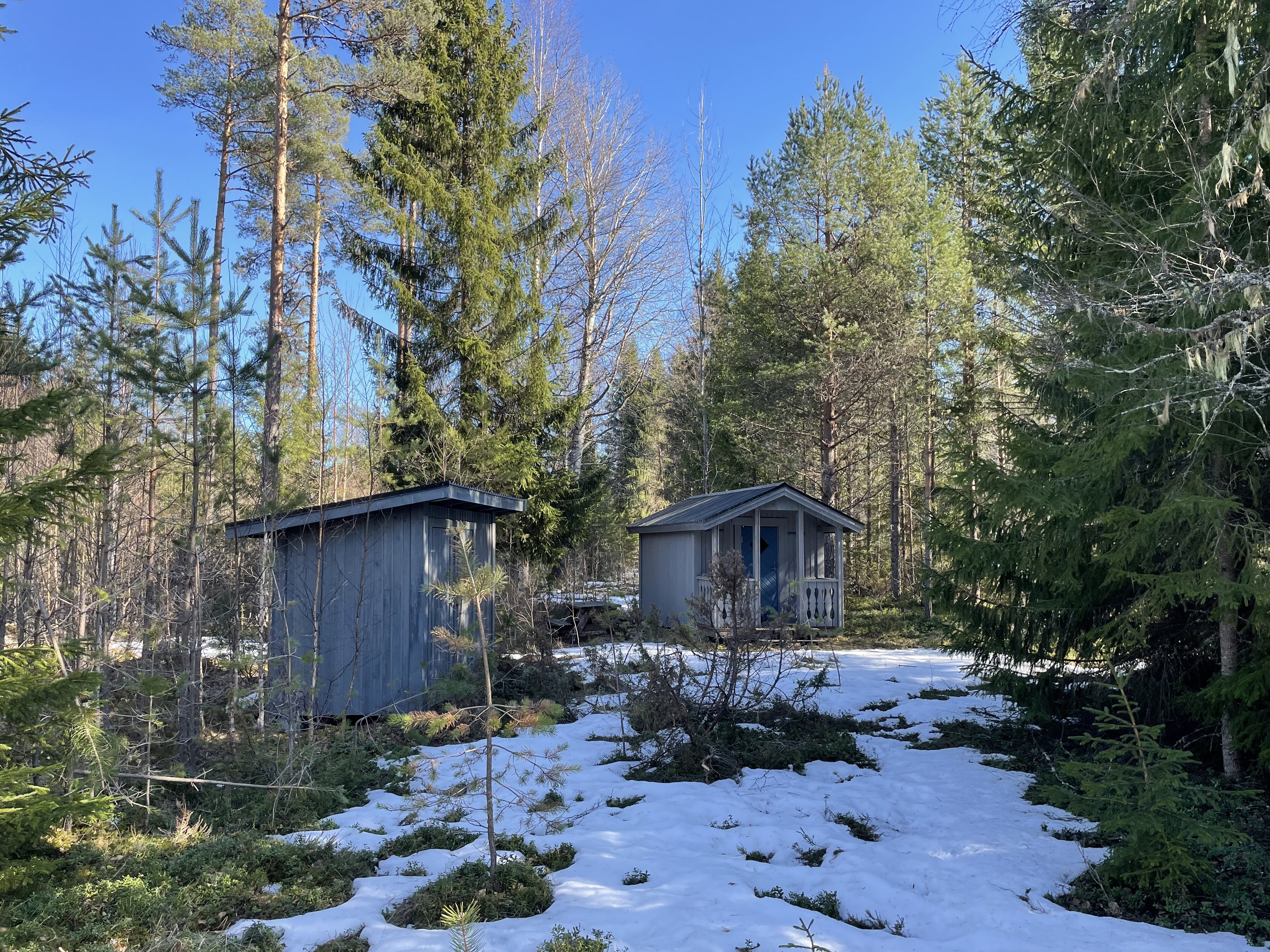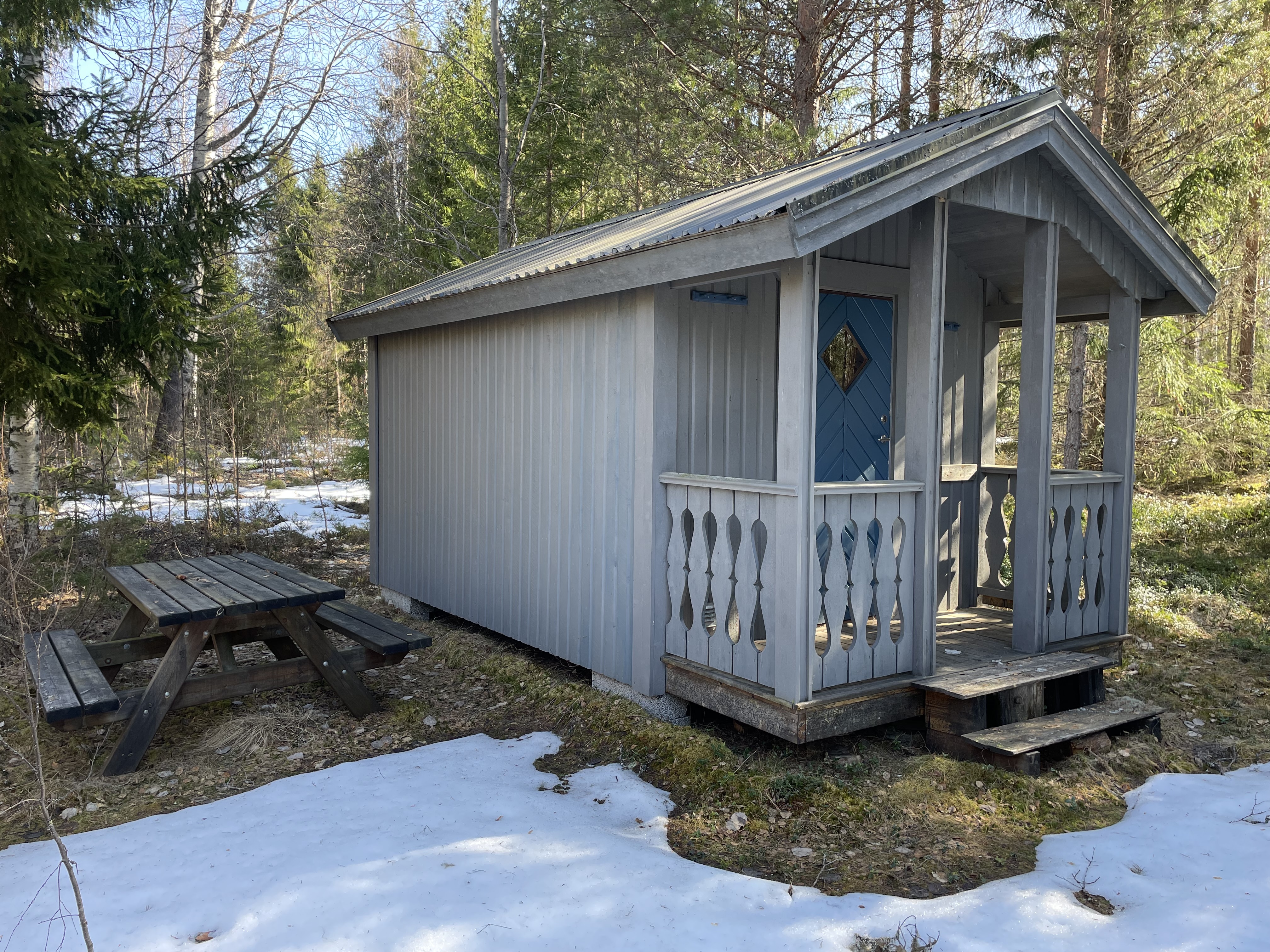 På fastigheten finns en välskött mindre stuga perfekt för övernattning, kompletterad med separat förrådsbyggnad i samma stil med förrådsutrymme och utedass. Stugan har en överbyggd farstukvist/veranda och invändigt ett genomtänkt och funktionellt utrymme med våningssängar, förvaring samt enkelt kök med gasolkök och arbetsytor. Inredningen är praktisk och anpassad för övernattning i samband med jakt, fiske eller naturvistelser.