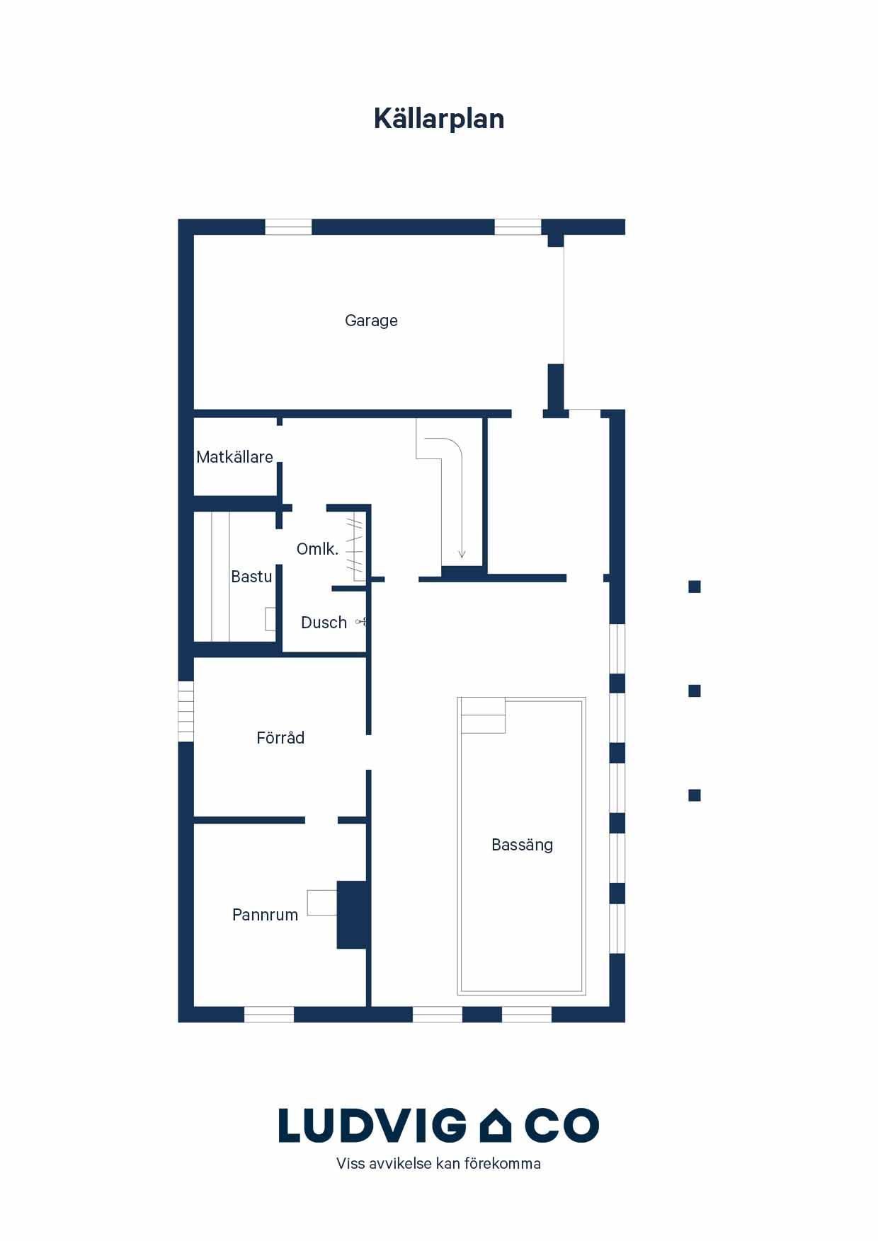 Den stora källaren erbjuder dessutom möjlighet att inreda en egen inomhuspool – en unik chans för dig som vill sätta extra guldkant på tillvaron.