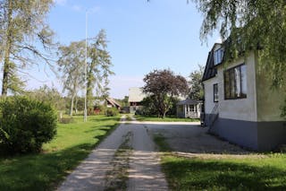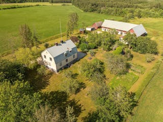 Gård mycket vackert och lugnt belägen vid vägs ände där det är lätt att trivas och ypperligt att växa upp som barn. Totalt 30 ha med all mark i ett skifte varav ca 15,5 ha åker och 12 ha skog. Bostad från år 1939 som rymmer den stora familjen med en boarea angiven till 200 m². Uppvärmning via ytjordvärme. Stor ladugård från år 1926 som numera mest är förråd. Djurhållningen upphörde för många år sen och därefter har delar av utrymmena bland annat använts till ölbryggning.