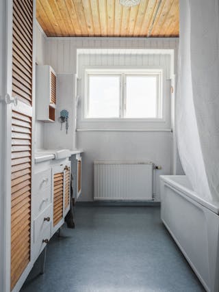Bryggarhus med bakugn (ej i bruk). Förråd/tidigare drängkammare. Träbyggnad under tak av plåt. Byggnadsyta 35 m² enligt försäkringsbrev.