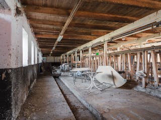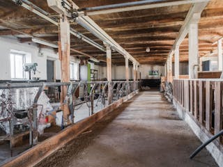 Ladugård i vinkel uppförd år 1926 i sten/trä med tak av plåt. Äldre djurinredning från tidigare mjölkproduktion. Lada med genomkörsel. Höloft. Lager och förråd, tidigare lokaler till gårdsbryggeriet. Luft-luft värmepump samt varmvattenberedare. På baksidan finns en trälagd altan i söderläge. Byggyta 569 m² enligt försäkringsbrev.