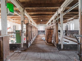 Förråd i trä under tak av eternit. Främst virkesförråd idag. 77 m² enligt försäkringsbrev.