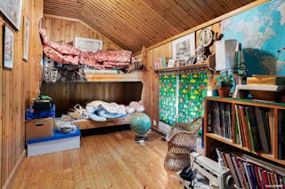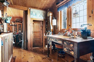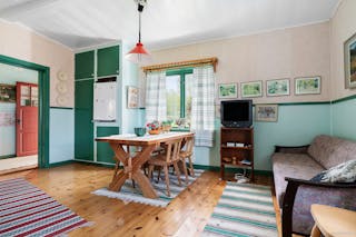 “Sixtens stuga” (bagarstuga i timmer, boarea ca 36 kvm) bjuder på bakugn och vedspis i köket, kamin i kammaren och en takhöjd som ger rymd – perfekt som gästhus, ateljé eller uthyrningsdel. I förlängningen finns lada, och på gården kompletterar förrådslänga, garage, härbre och visthusbod med äldre jordkällare.