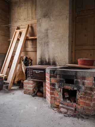 Byggnaden har historiskt använts till höns och grisar. Numera förråd. Stenbyggnad under tak av plåt. Delvis plåtklädd fasad. Elanslutning.