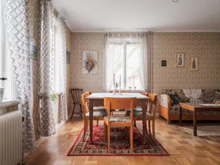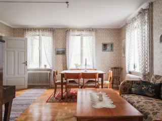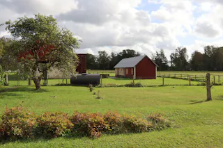 Överlag äldre standard och underhållsbehov föreligger. Vacker uppväxt trädgårdstomt omgiven av den egna jordbruksmarken.