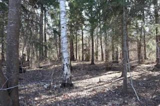 En liten fin skogsdunge på knappa ett tunnland (mindre än ett halvt hektar). Blandad skog.