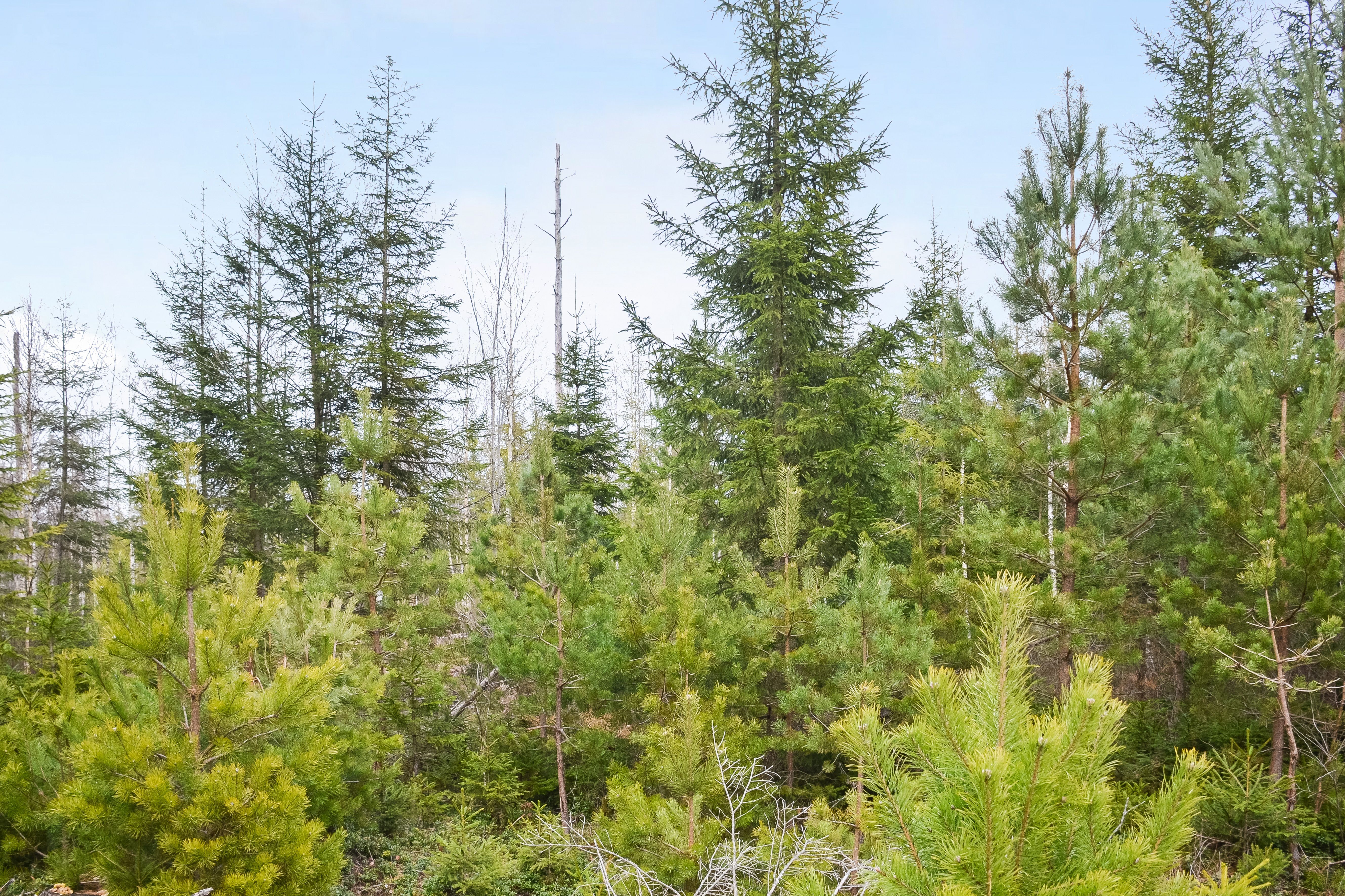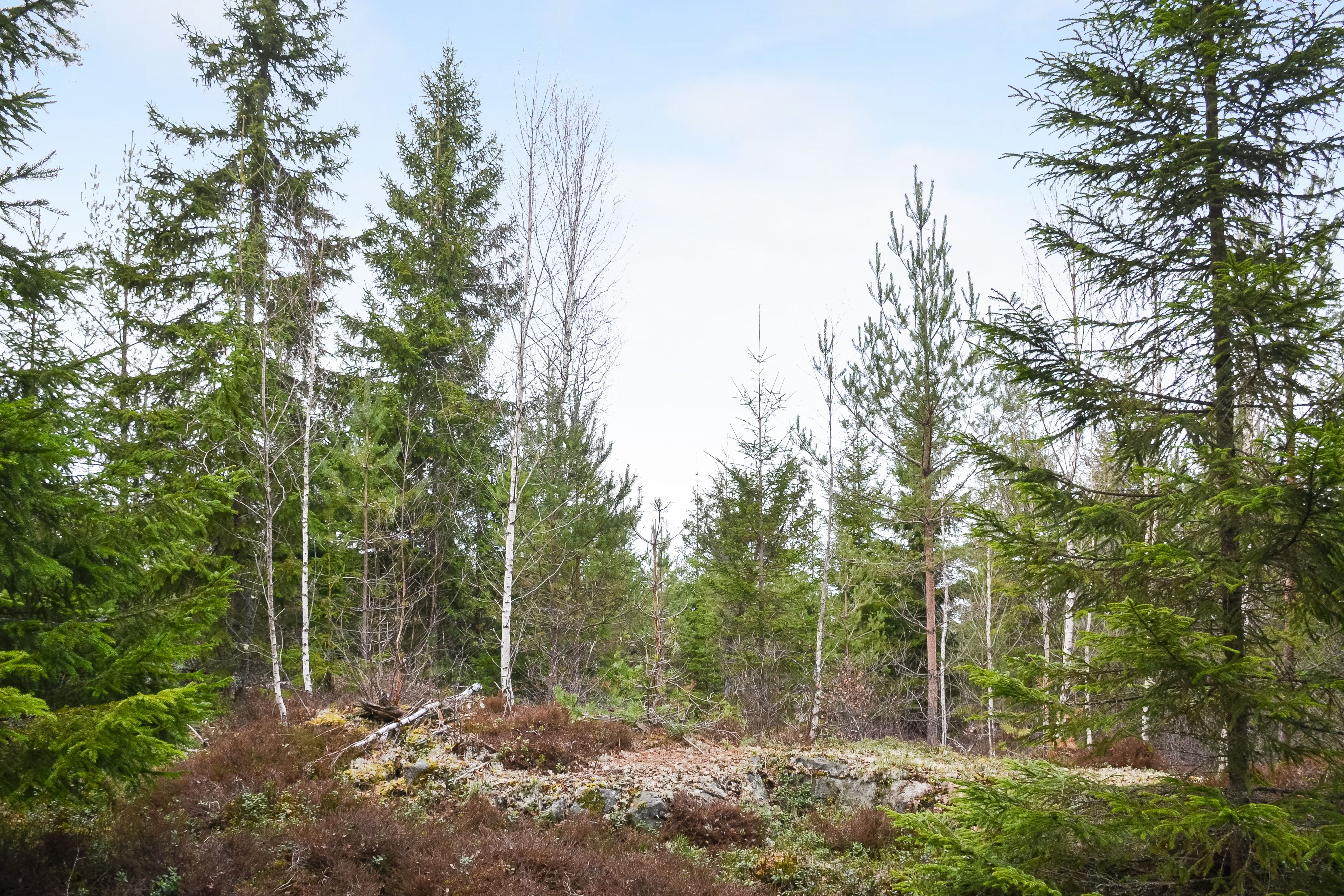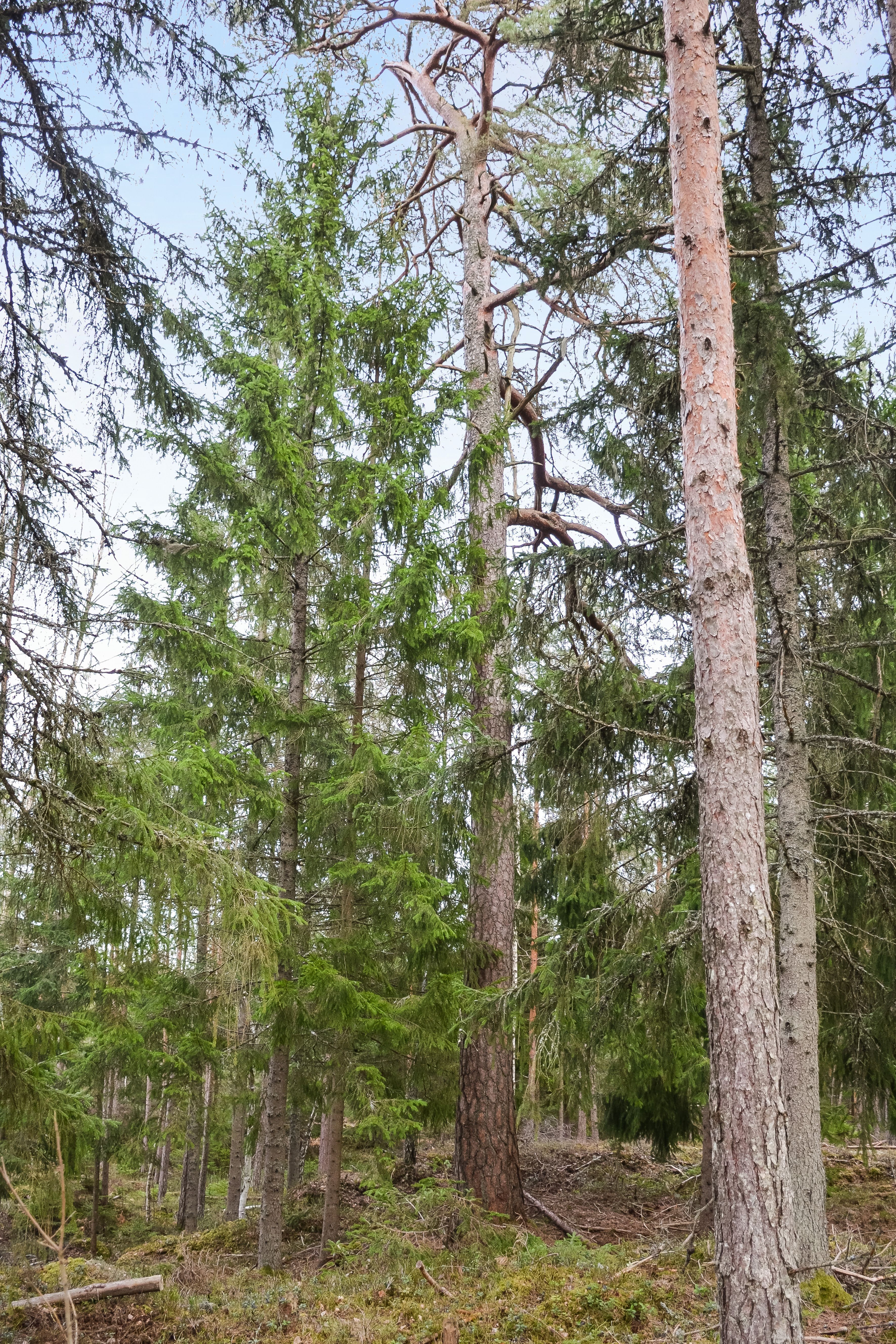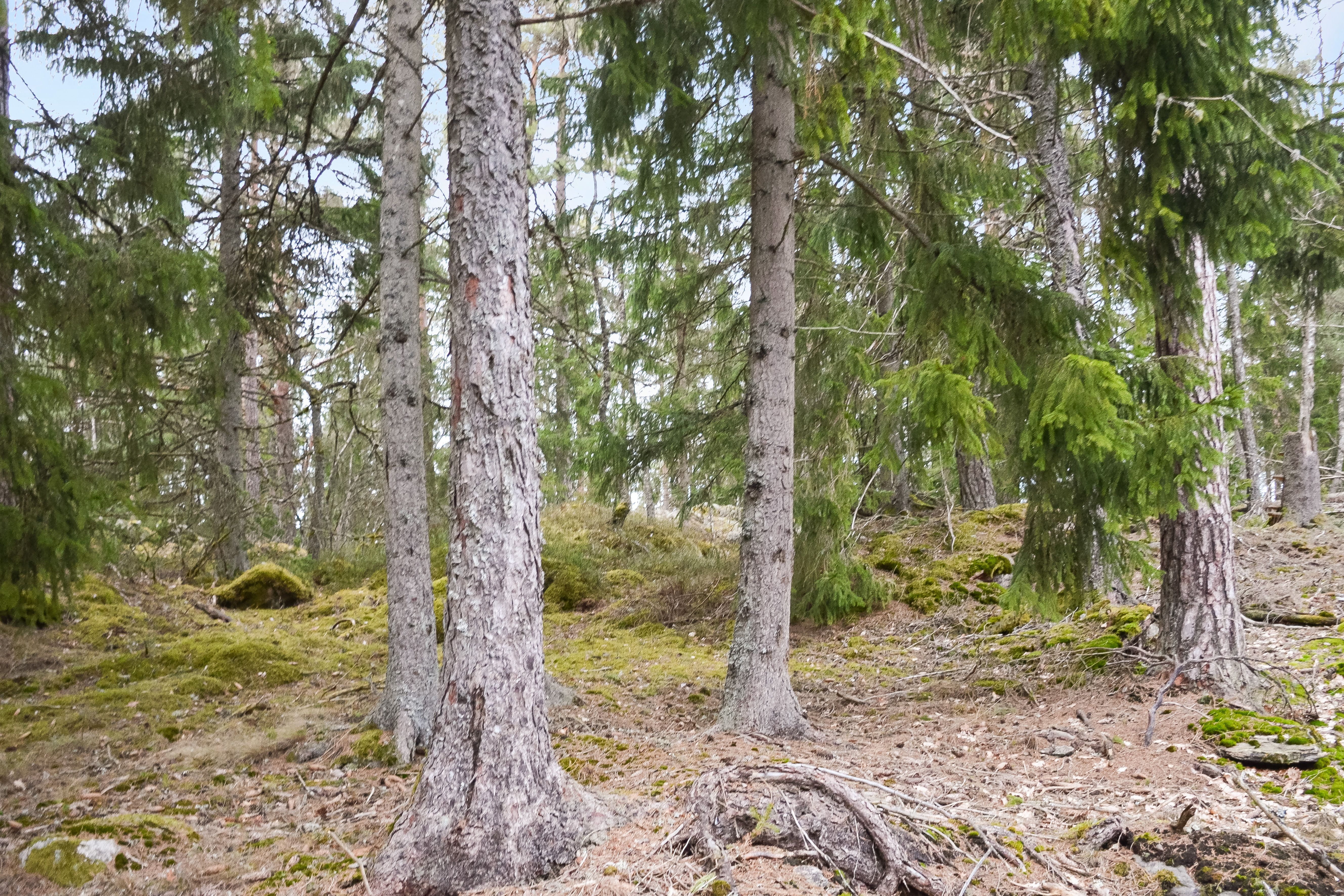 Trädslagsfördelningen utgörs av 30 % tall, 34 % gran och 36 % löv.