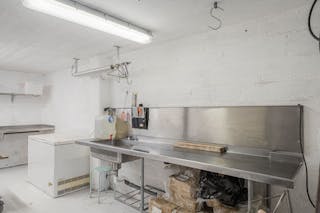 Slakteriet har ett gjutet golv, gjutet takvalv och murade väggar. Här finns rostfria arbetsbänkar, krokar mm samt två kylrum.