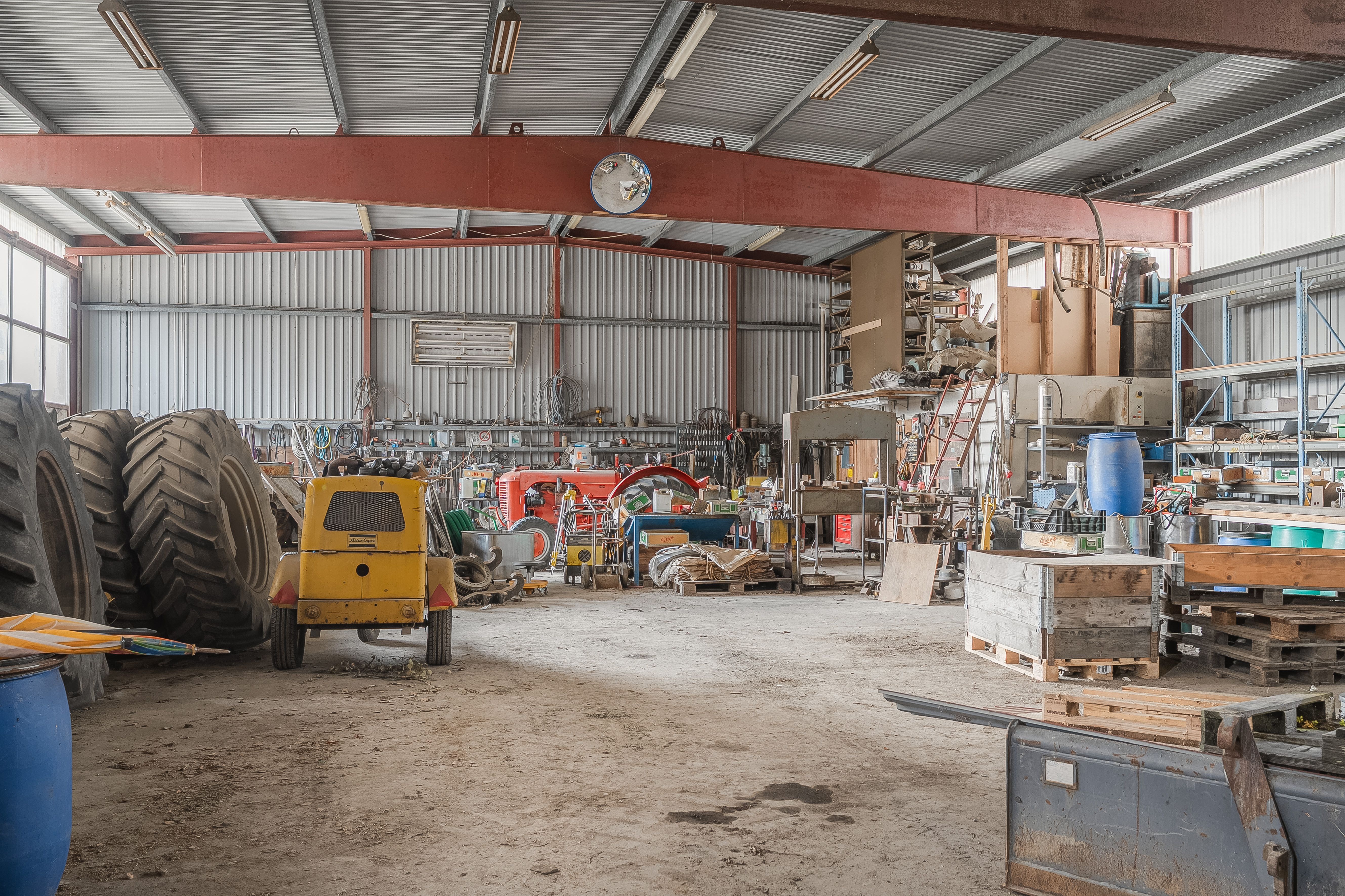 Till fastigheten hör ett gårdscentrum med en stor maskinhall samt verkstad och torkanläggning med stor kapacitet. Byggnaderna erbjuder fina möjligheter till att förvara maskiner och redskap för jord- och skogsbruk eller andra verksamheter.