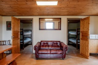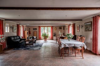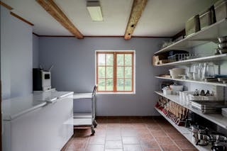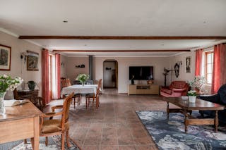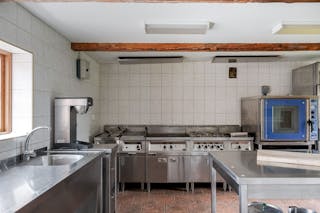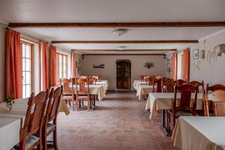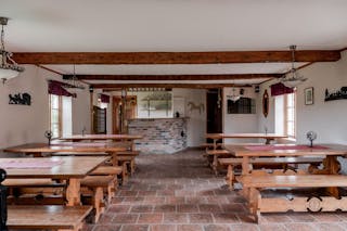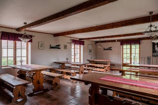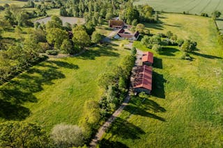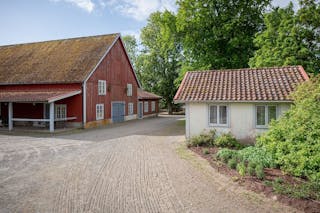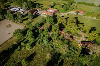 I den u-formade längan finns ett fullutrustat restaurangkök, matsal, bar och konferensytor – perfekt för bröllop, ridläger, konferenser eller festligheter. På ovanvåningen i stallet hittar du ytterligare en unik fest- och konferenslokal med lantlig charm och utsikt över gården.