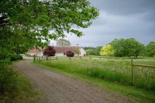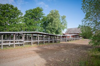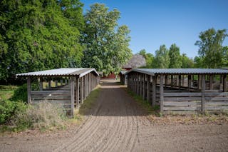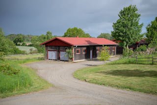 På totalt 21 hektar fördelat på ca 13 ha åkermark, 3 ha betesmark och 2 ha skog finner du en komplett anläggning för professionell djurhållning – oavsett om det gäller hästar, får eller andra djur. Här finns:
