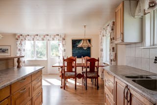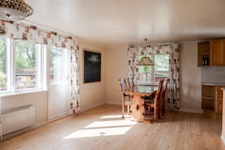 Fastigheten erbjuder också en idyllisk våtmark med badbrygga och sandstrand – perfekt för somriga dopp eller stilla stunder i naturen.