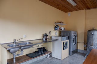 Hus om ca 36 kvm försett med tvättstuga med två större tvättmaskiner, torkrum samt vattenanläggning från den djupborrade vattenbrunnen med hydrofor och vattenpump. Putsade väggar och tak belagt med tegel. Klinkergolv, träpanel i tak. Uppvärmning med elradiator och luftvärmepump.