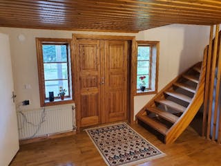 Bostadshus med äldre bevarade detaljer såsom trägolv, dörrar, eldstäder etc.