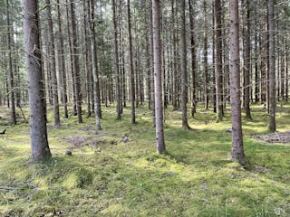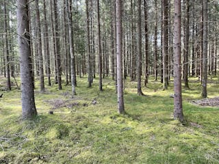 Totalt ca 16 000 m³sk med en bonitet på 8,5 m³sk per ha. Fastigheten har bra vägnät.