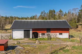 På fastigheten finns en rymlig stall- och ladugårdsbyggnad med vidbyggd maskinhall, som erbjuder goda möjligheter för djurhållning, förvaring eller hobbyverksamhet.
