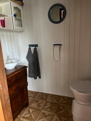 Från hallen till höger nås WC med kassettoa som installerades 2017.