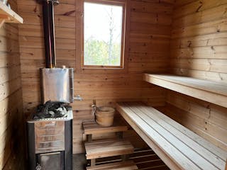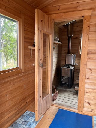 Fin, vedeldad bastu med förstuga, uppförd 2017.